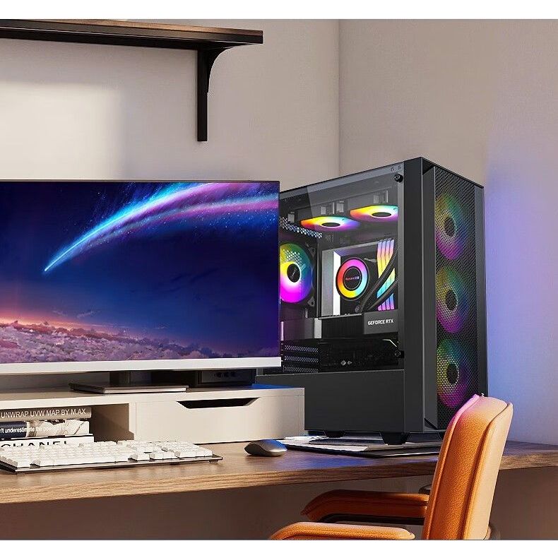JT PC Casing Gaming Predator case matx RTX 4080S/5090D Komputer Cassing Castle Mini ITX/M-ATX USB 3.0 3Fan ARGB PC with Tempered Glass Case Free 1 Tahun.