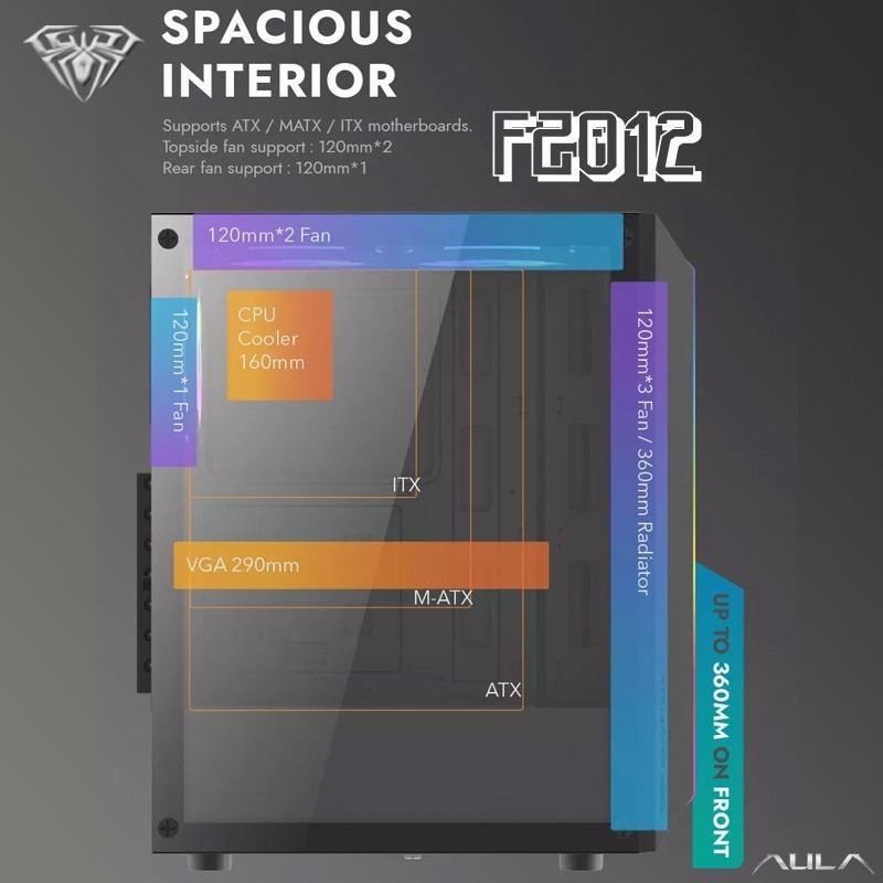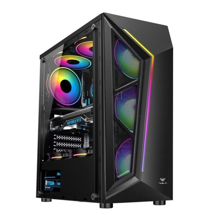 Aula Casing Pc Gaming Fz012 Atx Include 3 Fan Rgb - Casing Fz 012