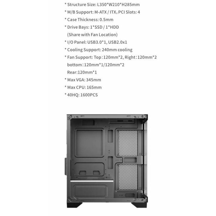Raptor Aqua Zone Casing Komputer Gaming M-ATX Free 3Fan RGB