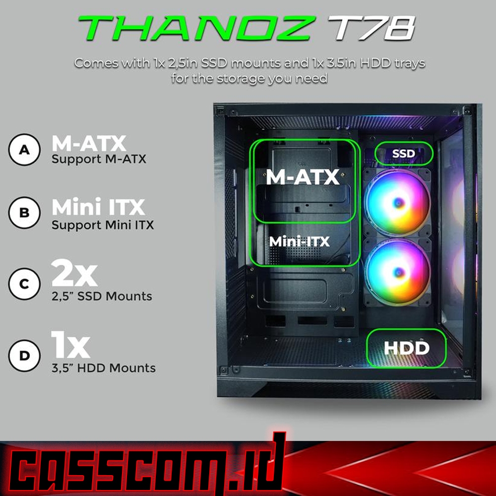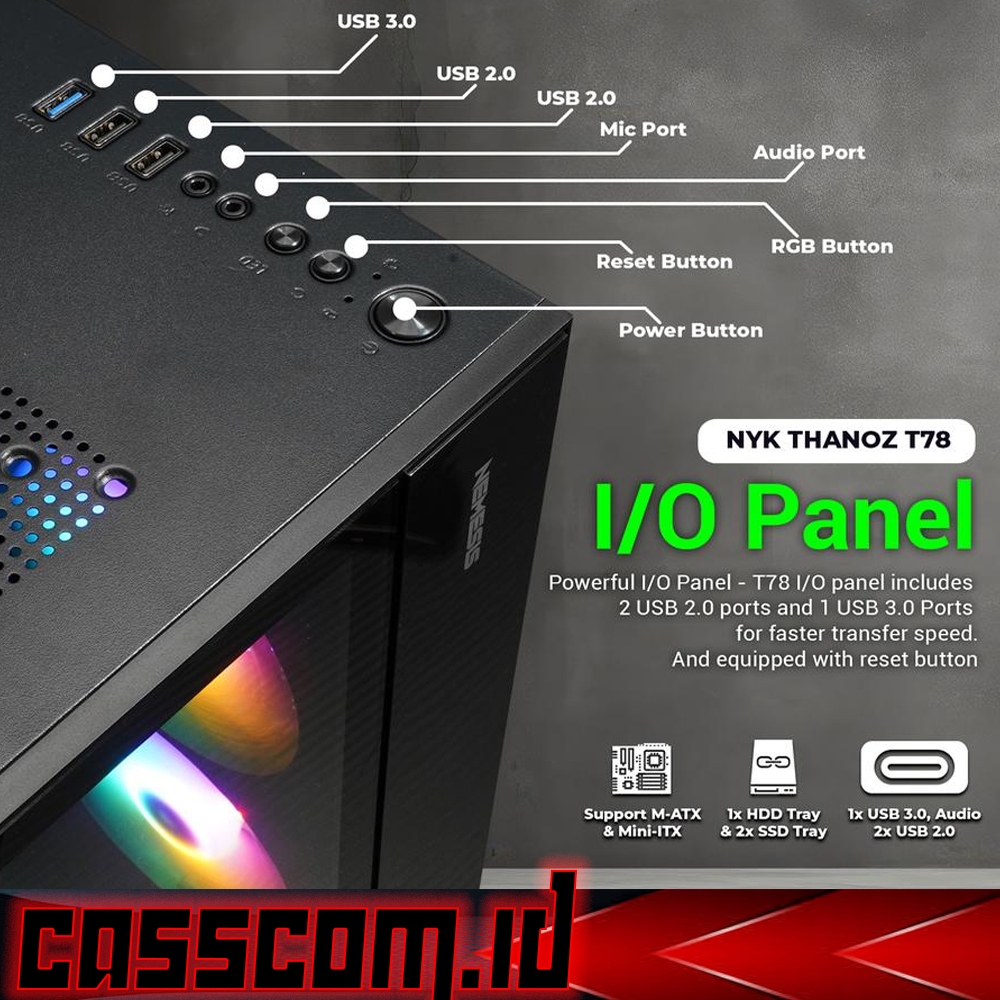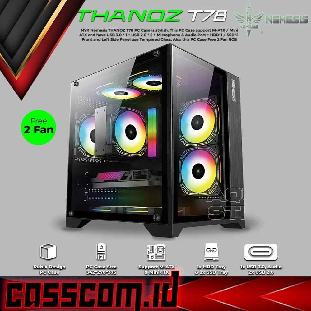 NYK Nemesis Thanoz T78 M-Atx Mini-Atx Tempered Glass - PC Case Gaming Free 2 Fan RGB