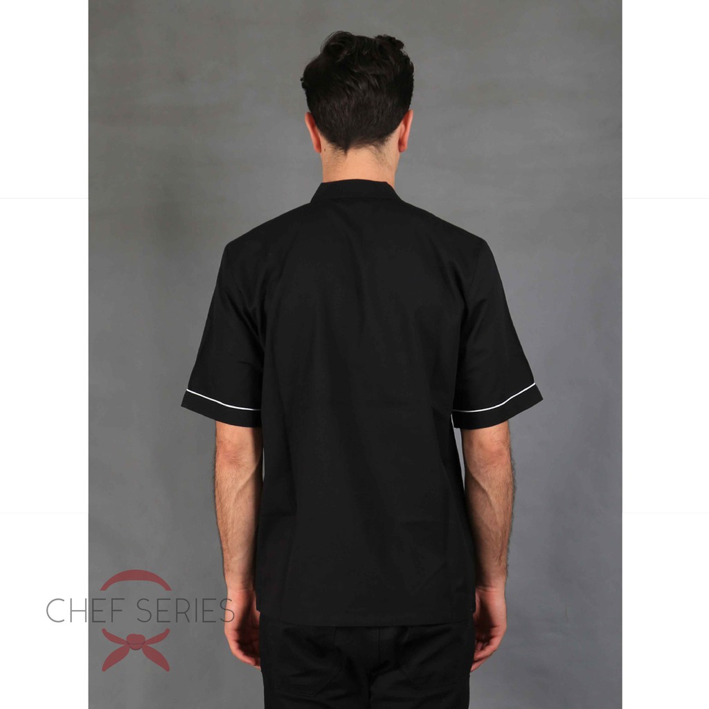 Chef Series Basic Tangan Pendek Baju Koki - Hitam Garis Putih