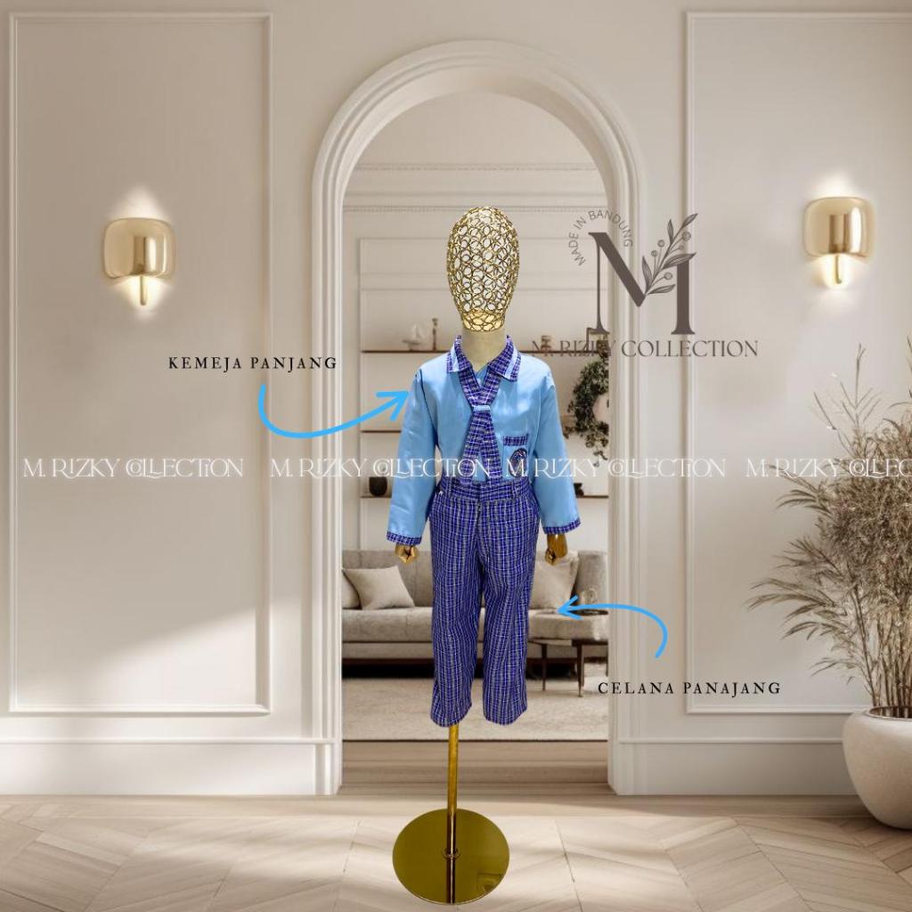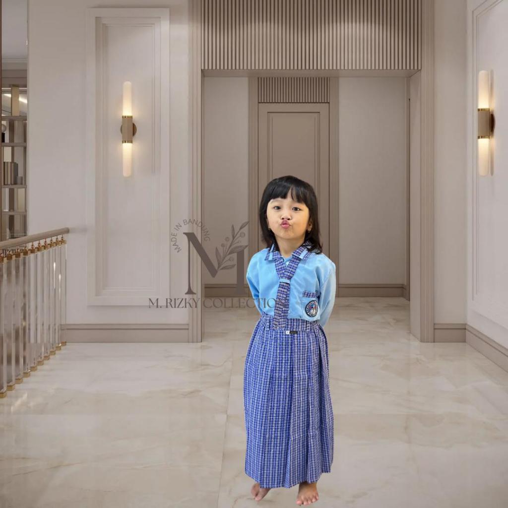Set Seragam Kotak-Kotak Biru TK/Paud Nasional Laki-Laki dan Perempuan Panjang/Pendek