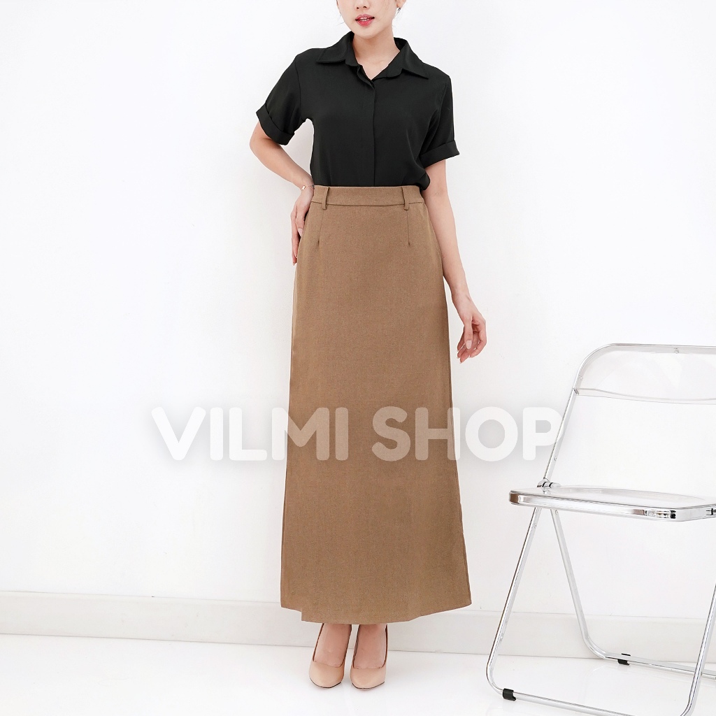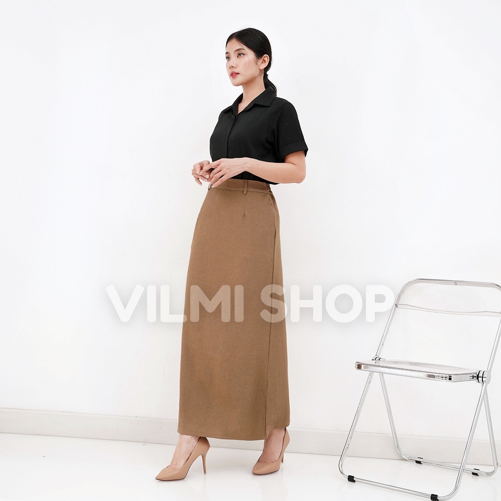 Rok Kerja Model A Line Wanita Formal Pinggang Karet Samping Resleting Bahan Stretch Premium