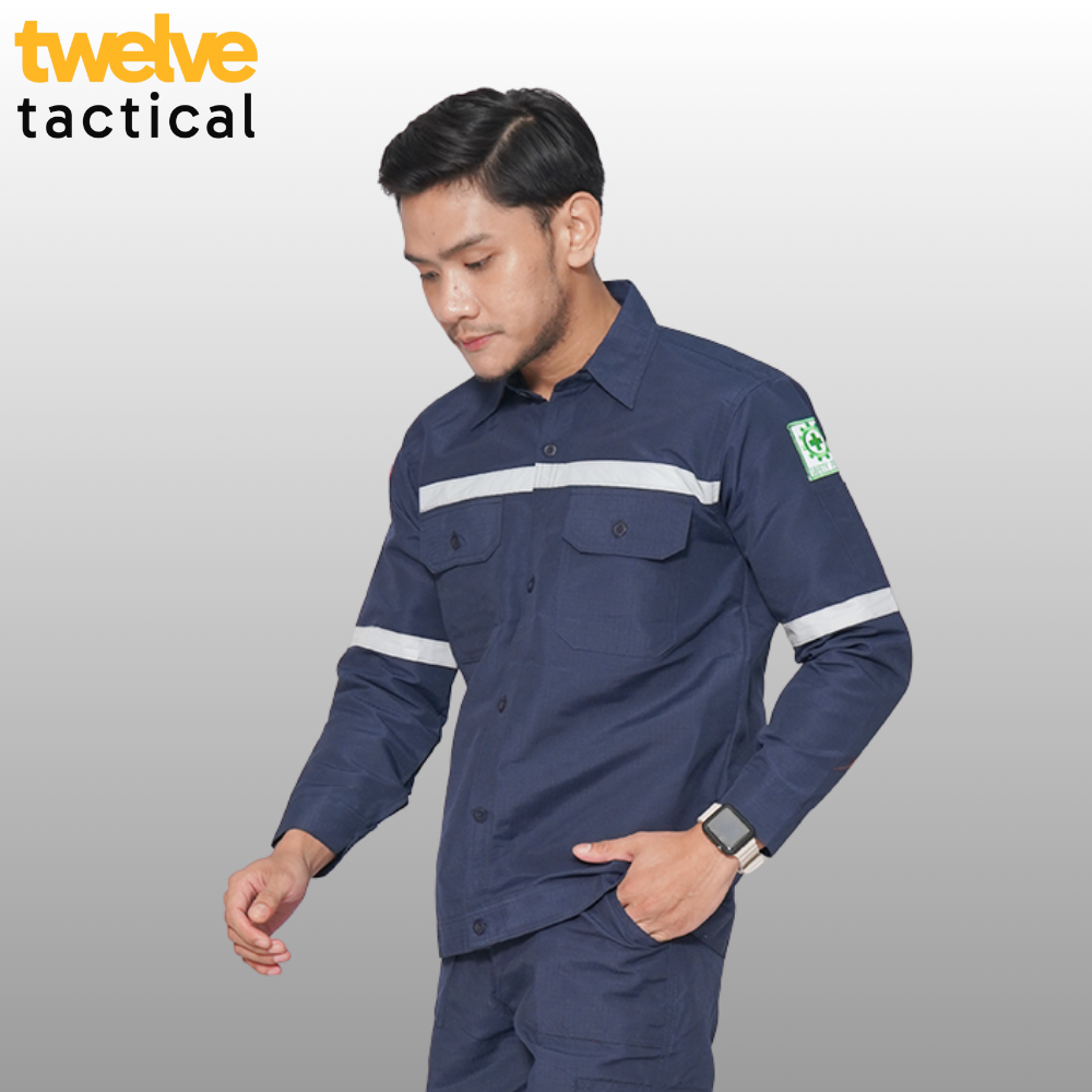 KEMEJA SAFETY LAPANGAN DOOR SCOTLIGHT LENGAN PANJANG BIRU