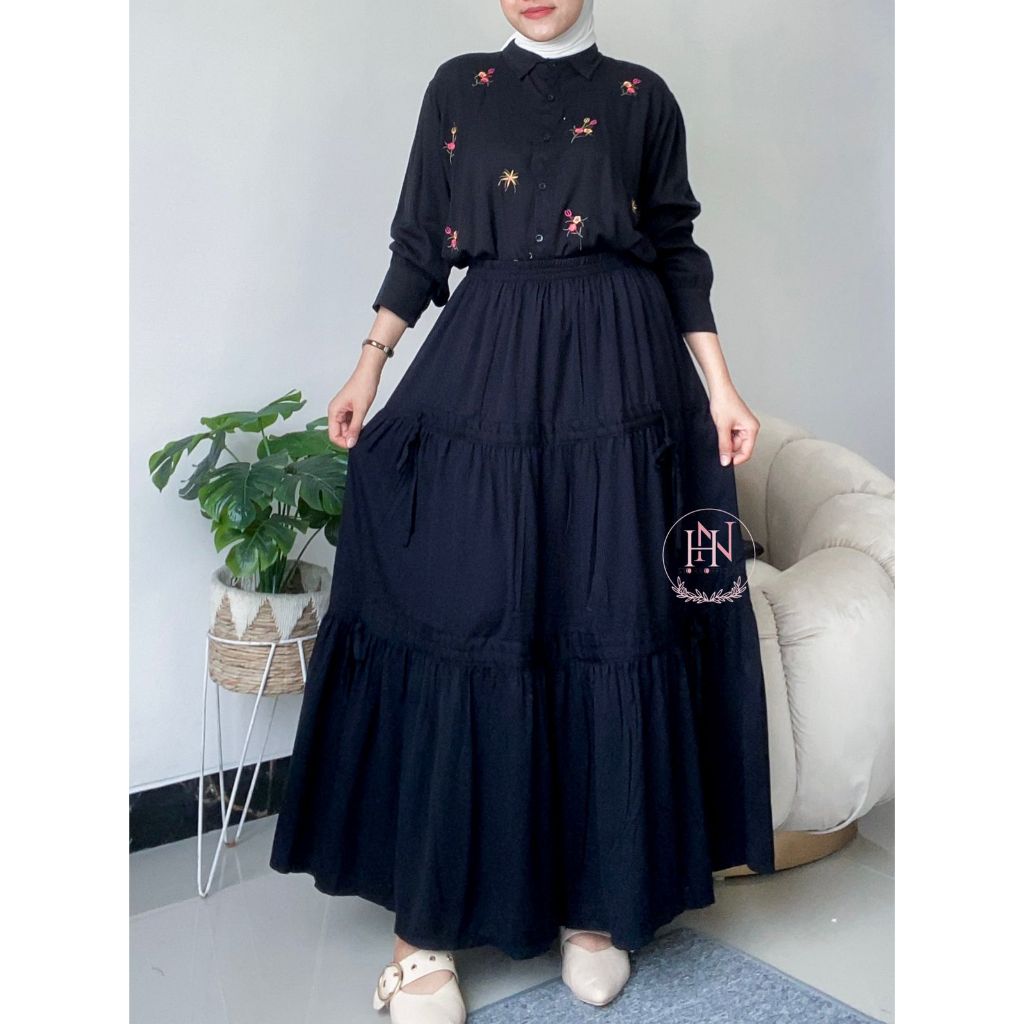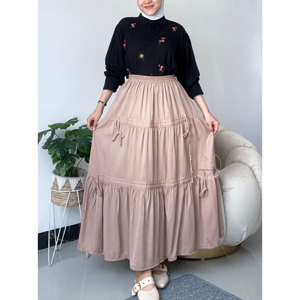 Gladis Rok Wanita Casual Karet Melar Pita Skirt Panjang Mayung Rayon Twill