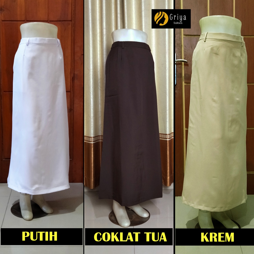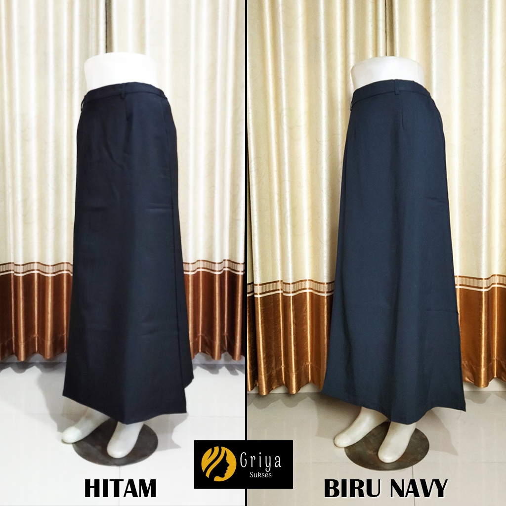 Rok Kerja Panjang Model A Line Size S M L XL XXL XXXL 5L, Rok Kuliah Hitam Putih Belt Sleting Jumbo