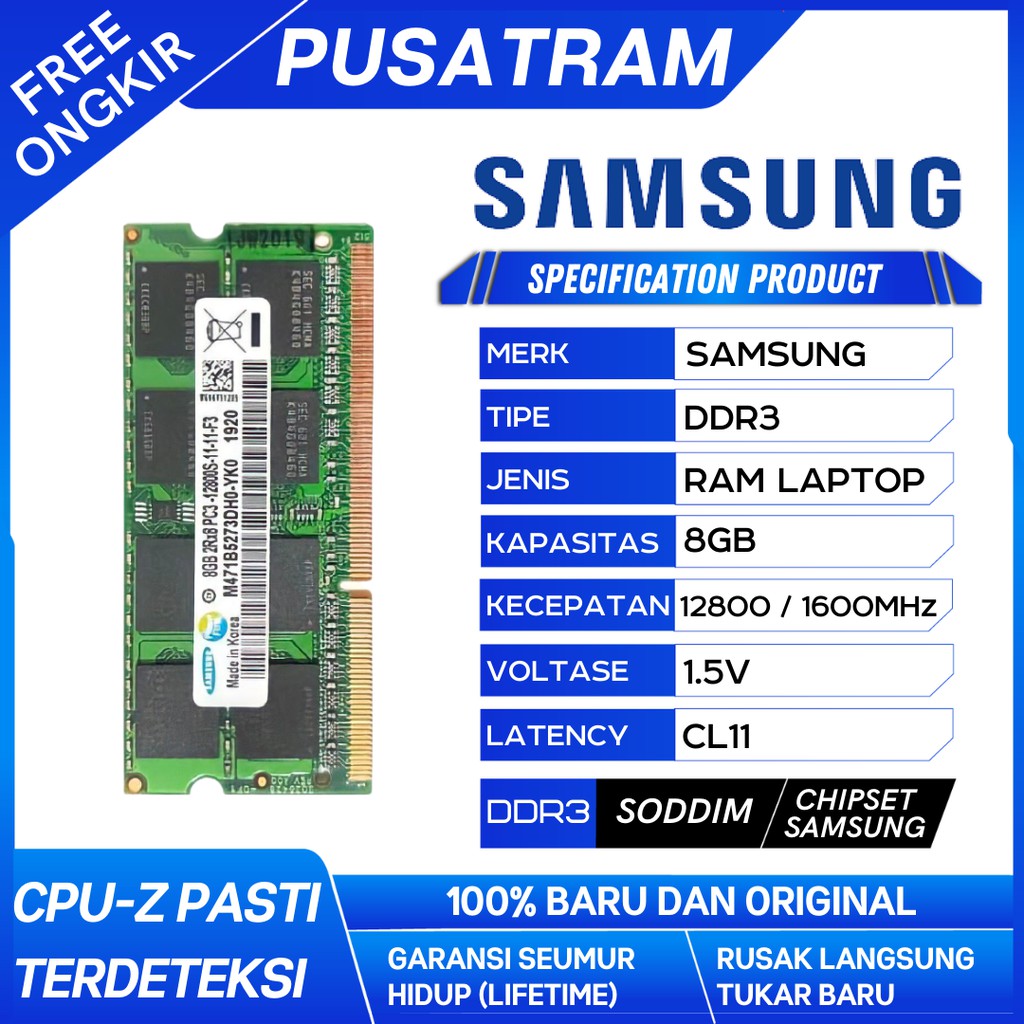 RAM LAPTOP SAMSUNG DDR3 8GB 12800/1600MHz ORIGINAL RAM SODIMM 1.5v 8GB