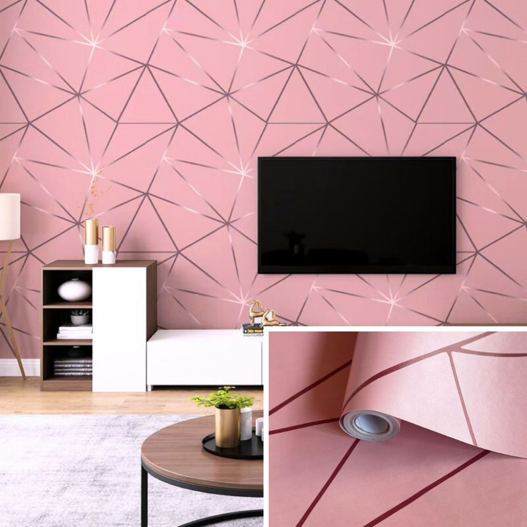 WALLPAPER TERMURAH / WALLPAPER STICKER DINDING MOTIF PIRAMID ELGAN LOS PINK UKURAN 8 METER X 45CM