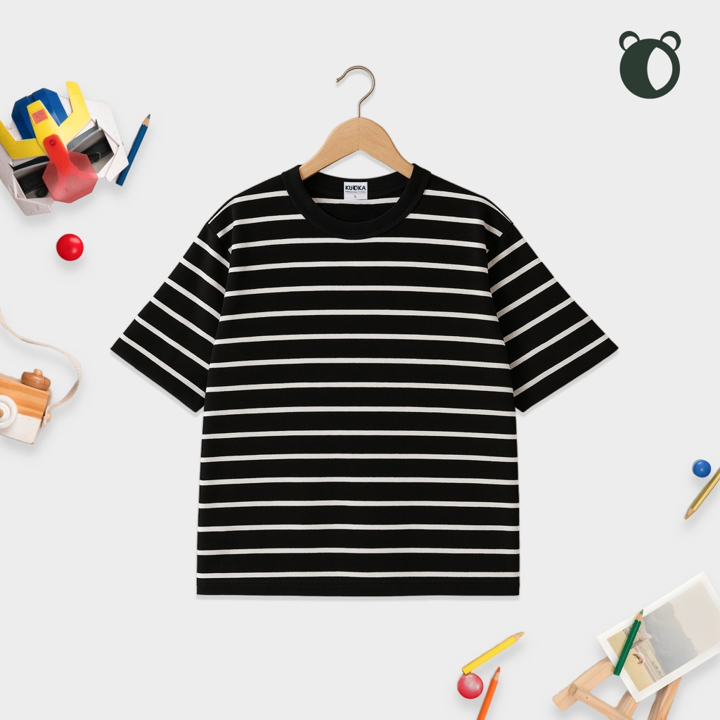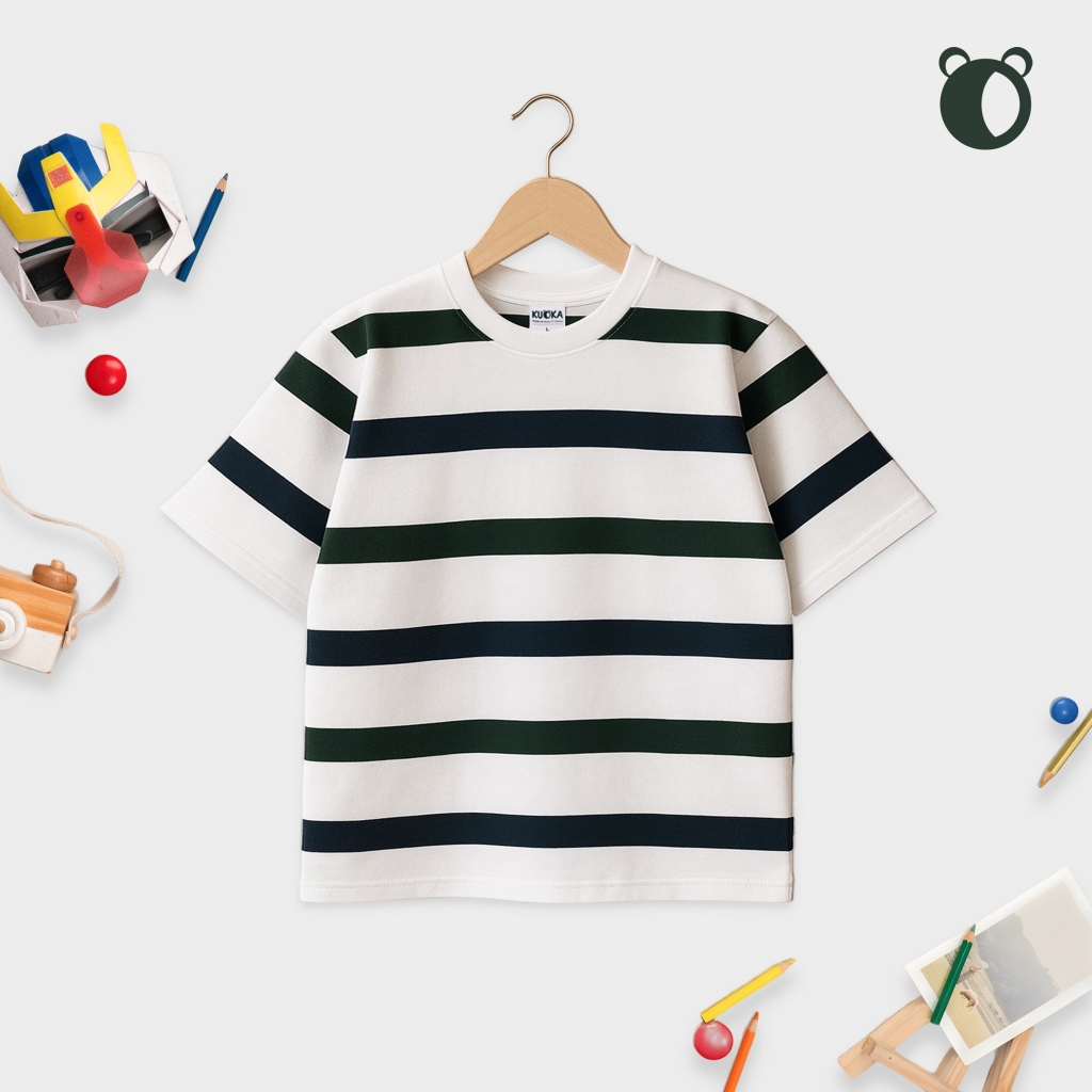 KUOKABASIC Kaos SALUR Anak Oversize | Kaos Stripe Anak Unisex | Baju Motif Garis Anak Premium 24s