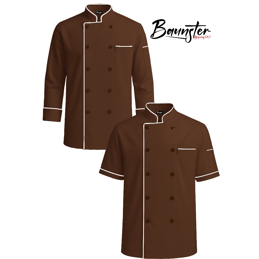 Baunster Baju Chef Cokat Lis Putih Bahan Drill Int Size Unisex