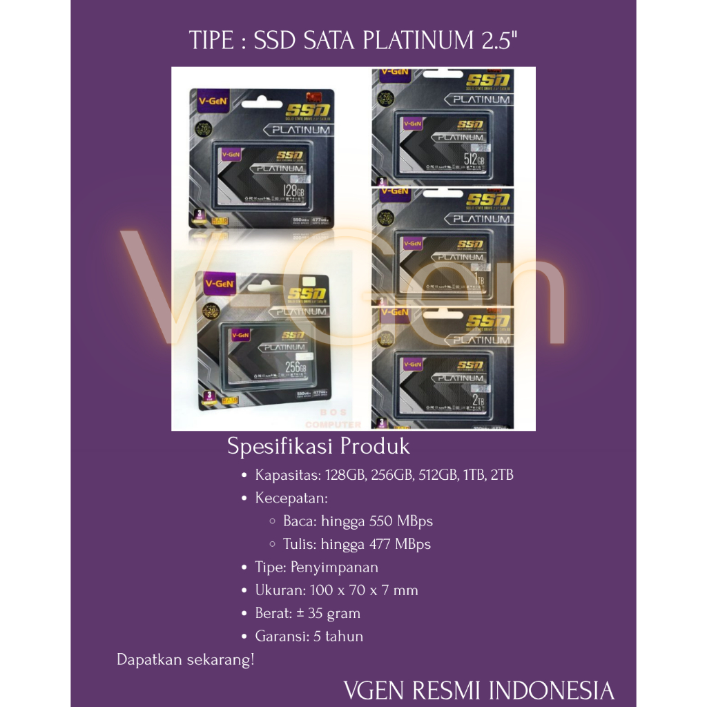 SSD V-GeN PLATINUM SATA 128GB 256GB 512GB 1TB SATA 2,5" VGeN + HDD Caddy 9,5mm/12,7mm
