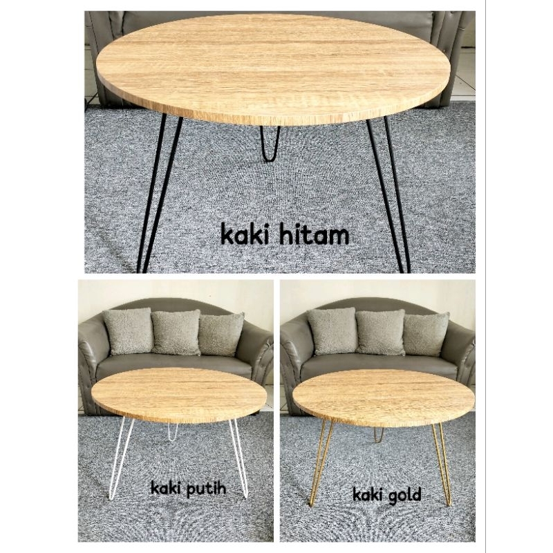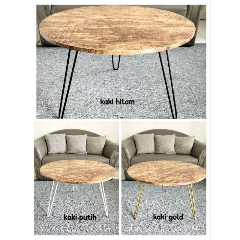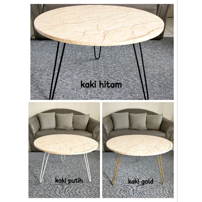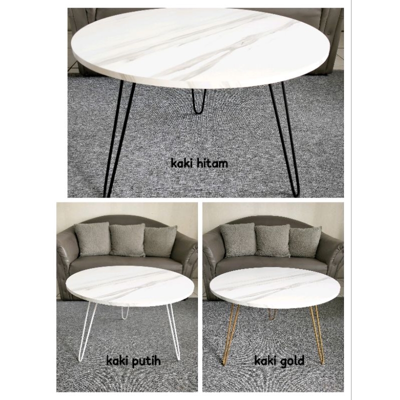 meja tamu/meja bulat/motif marmer kaki besi diameter 60