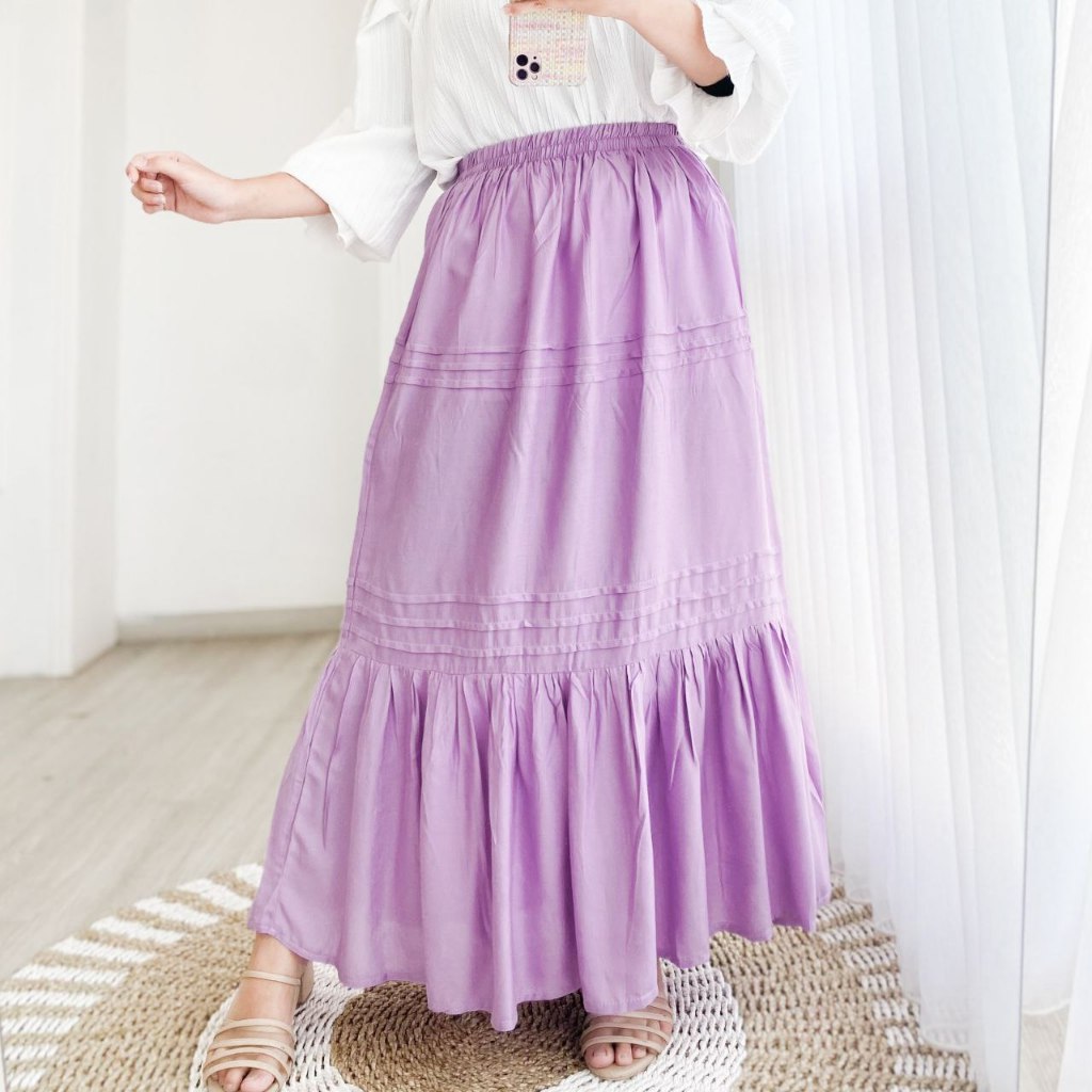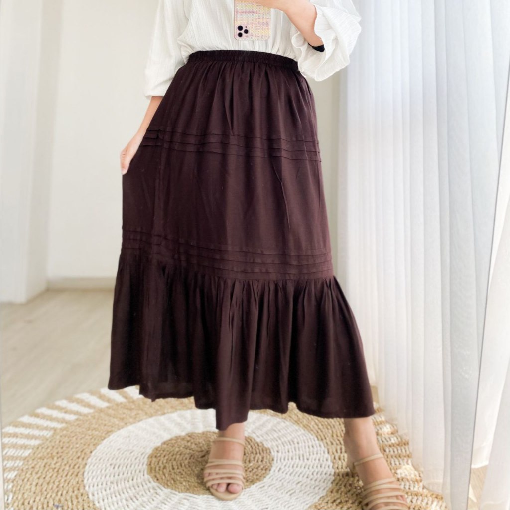 Anya Skirt Rok Panjang Remple Katun Rayon | Rok Wanita Flowy Casual | Rok Wanita Korean Style | Bawahan Wanita Kekinian