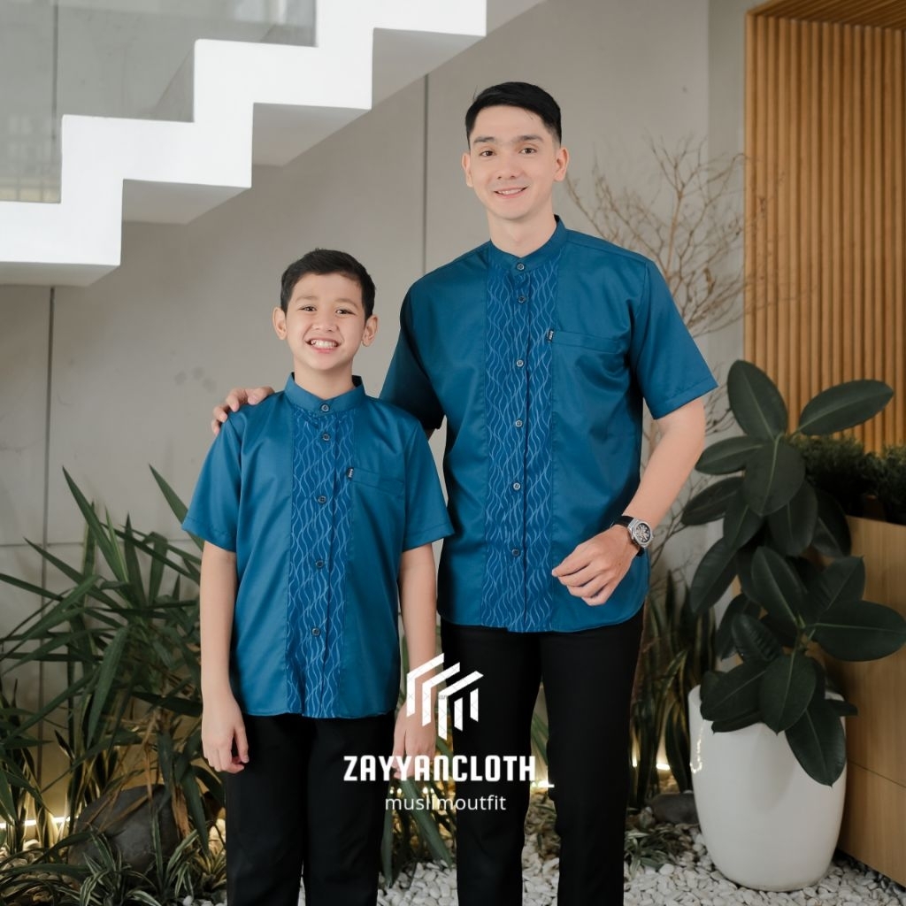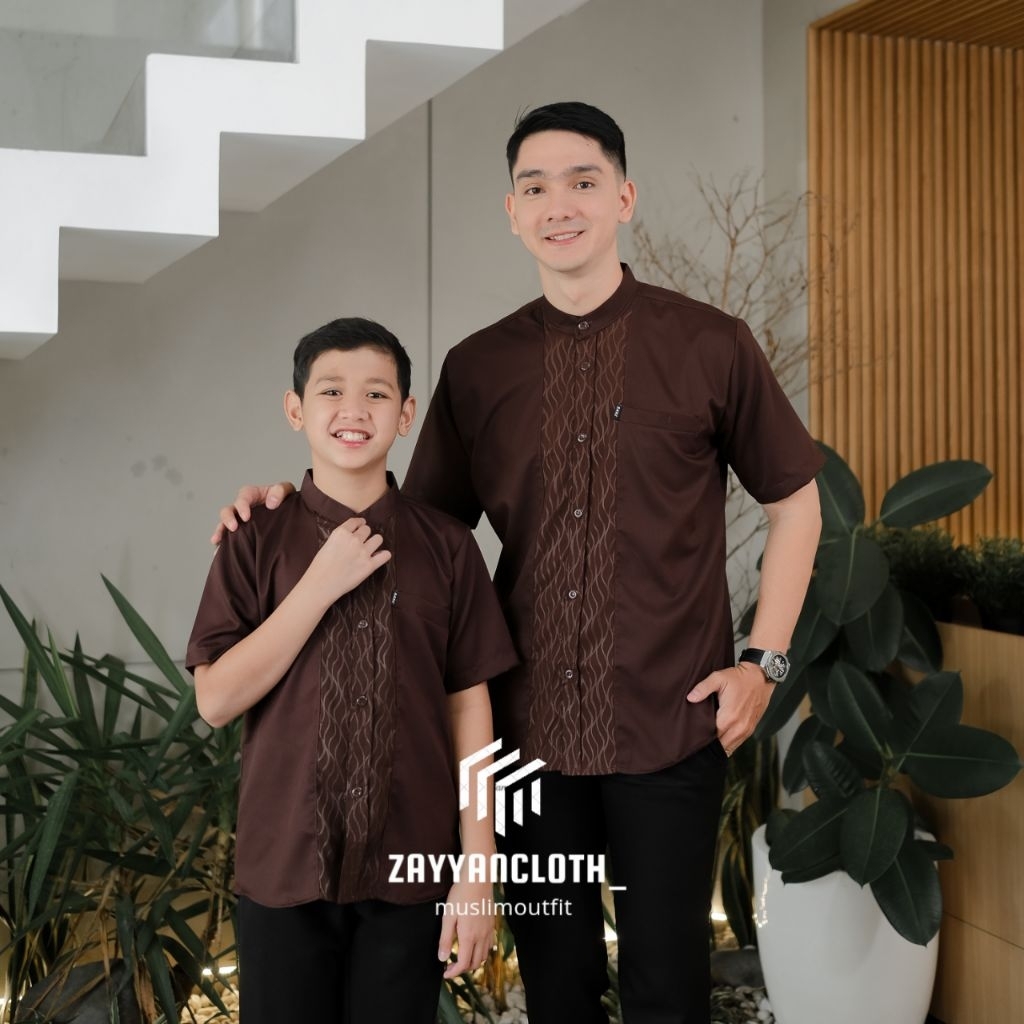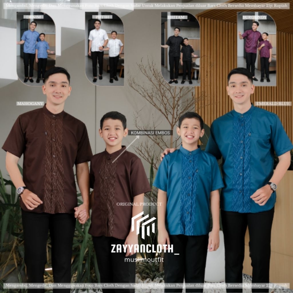 Baju Koko Couple Ayah Dan Anak Lengan Pendek Bahan Toyobo Premium Kombinasi Embos Terbaru 2026