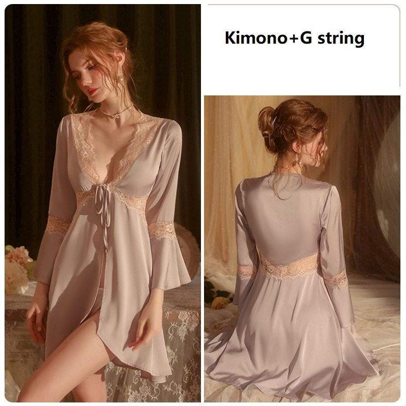 Kimono +G string Baju Tidur Lingerie Wanita Satin premium Dress Y70