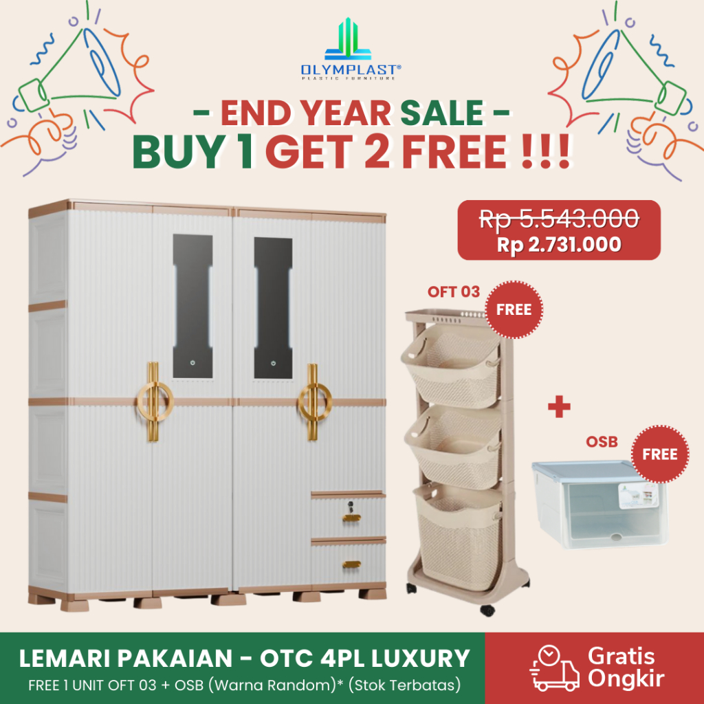 Olymplast OTC 4PL ST2 LUXURY / Lemari Pakaian Plastik / Lemari Pakaian Mewah / Lemari Pakaian 4 Pintu