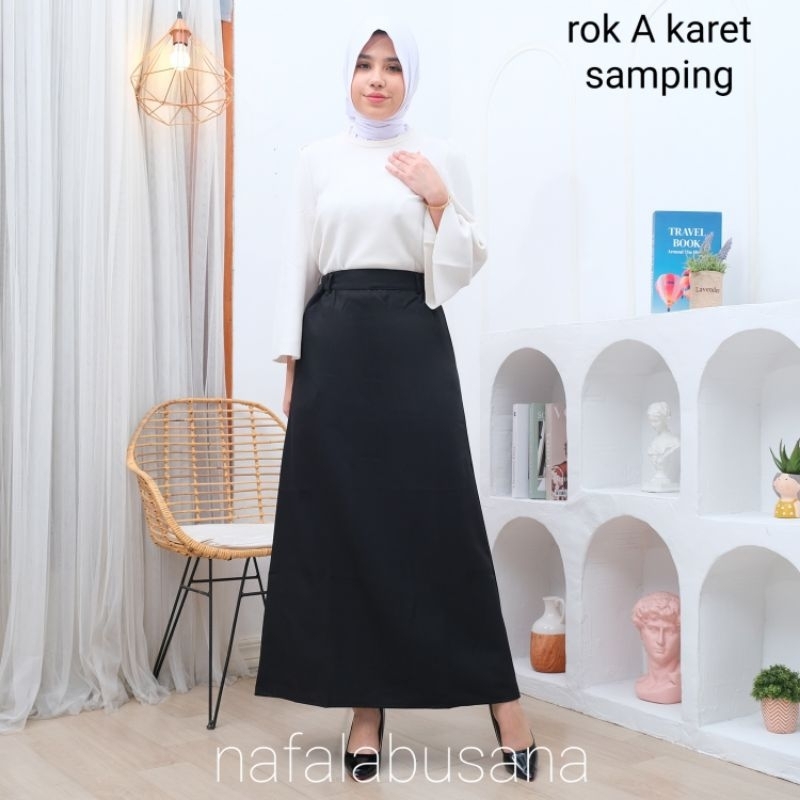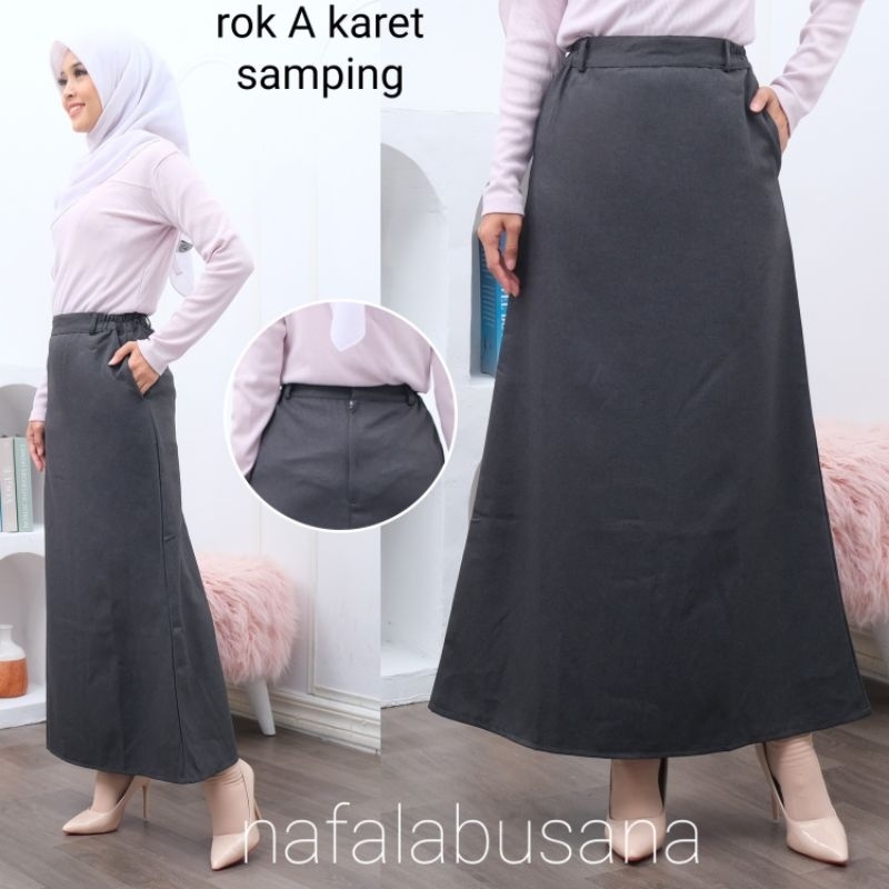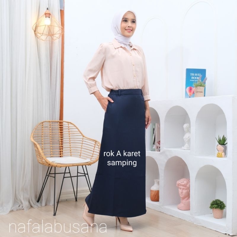 Rok Kerja Wanita A Line Ada Kantong Pinggang Karet Samping