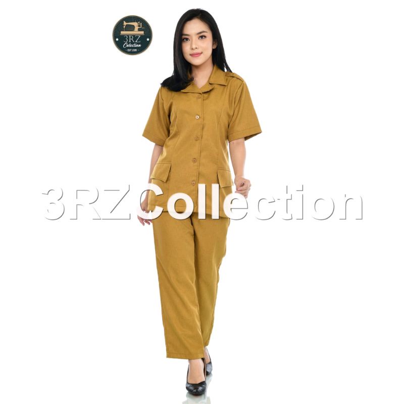 Baju Seragam Dinas PNS PDH Wanita - Baju Seragam Dinas Lengan Pendek Wanita Blazer Celana Kerja