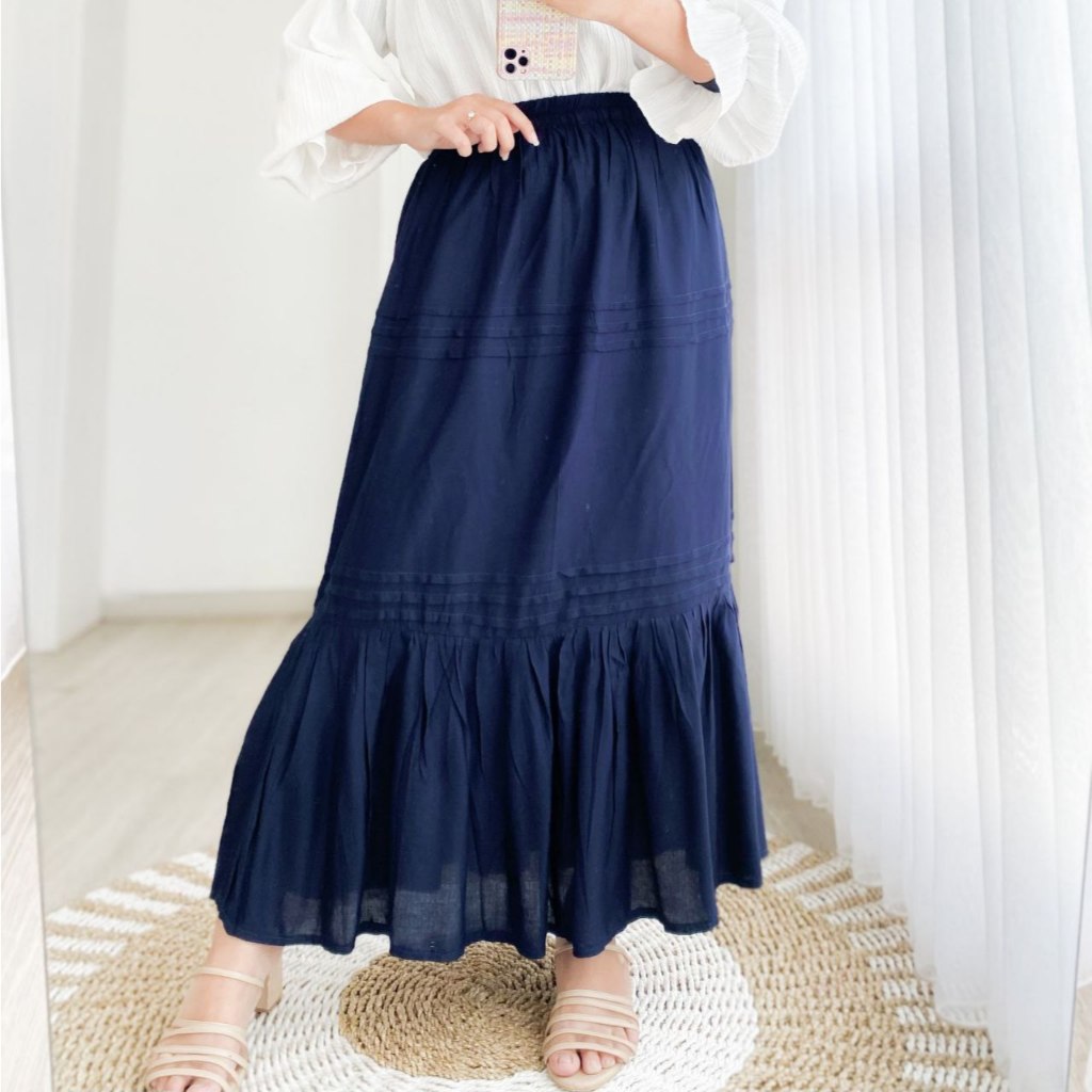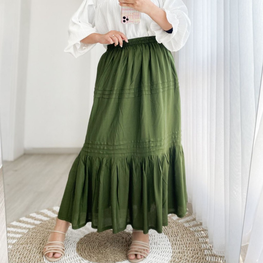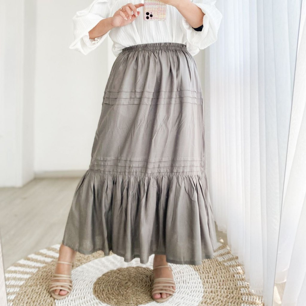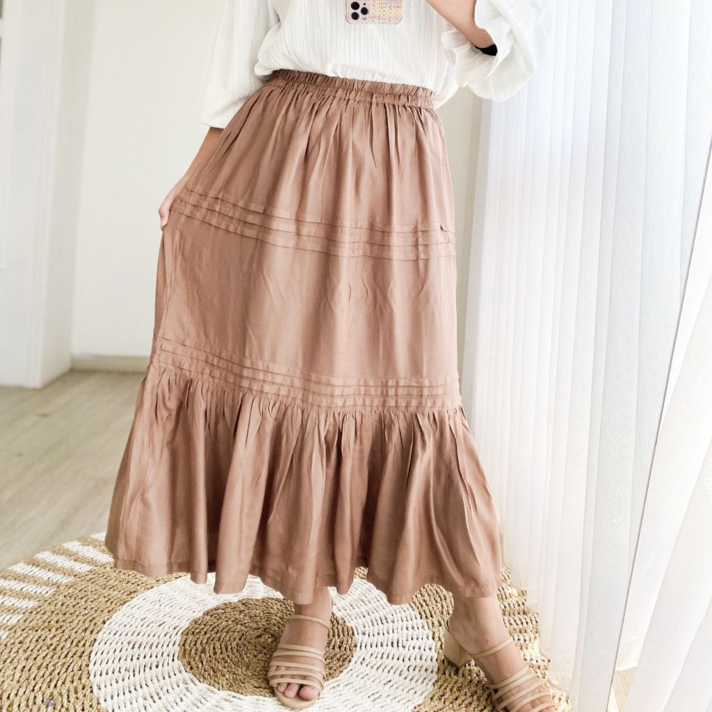 Anya Skirt Rok Panjang Remple Katun Rayon | Rok Wanita Flowy Casual | Rok Wanita Korean Style | Bawahan Wanita Kekinian