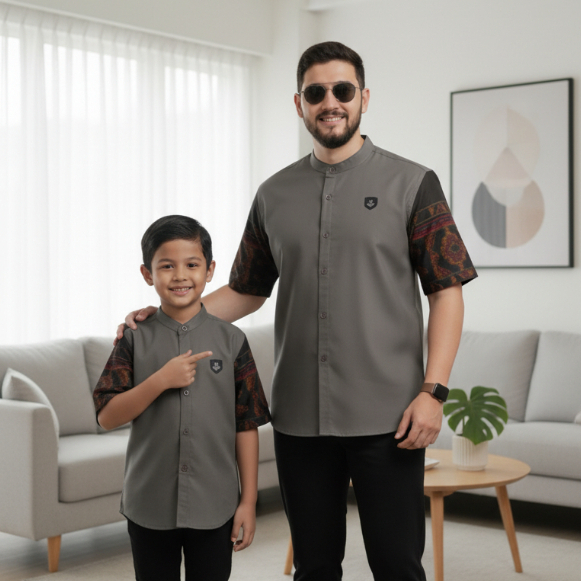 Baju Koko Couple Ayah Anak Laki Laki Lengan Pendek Kain Katun Premium Terbaru 2025