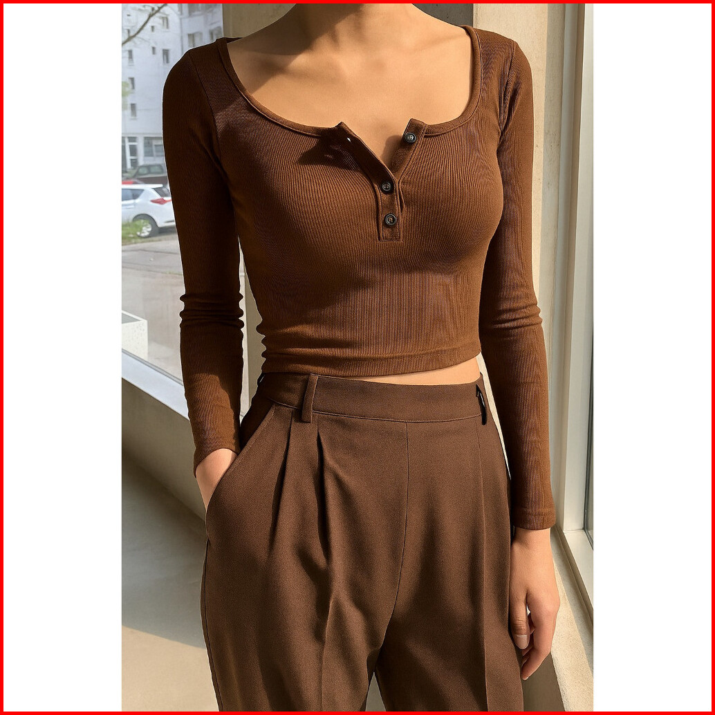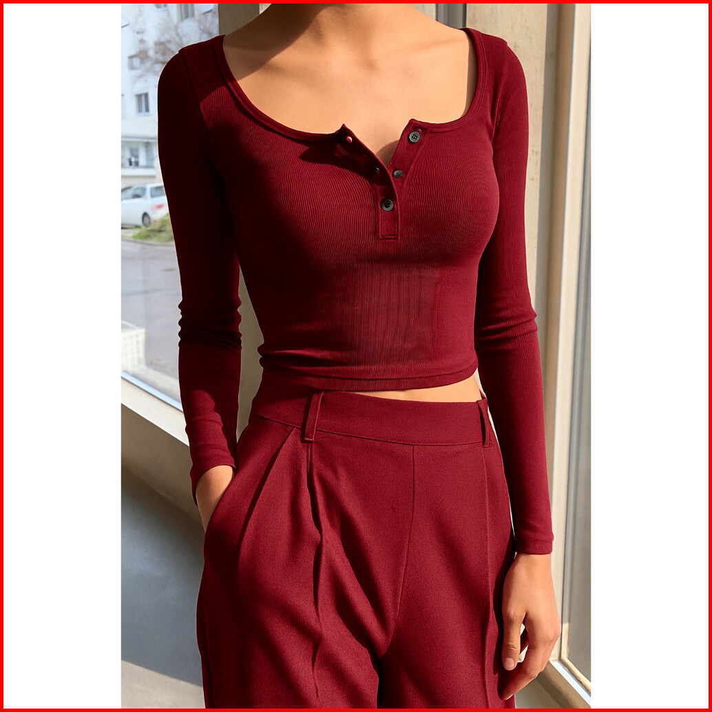Atasan Longsleeve Scop Uneck Knit Rib