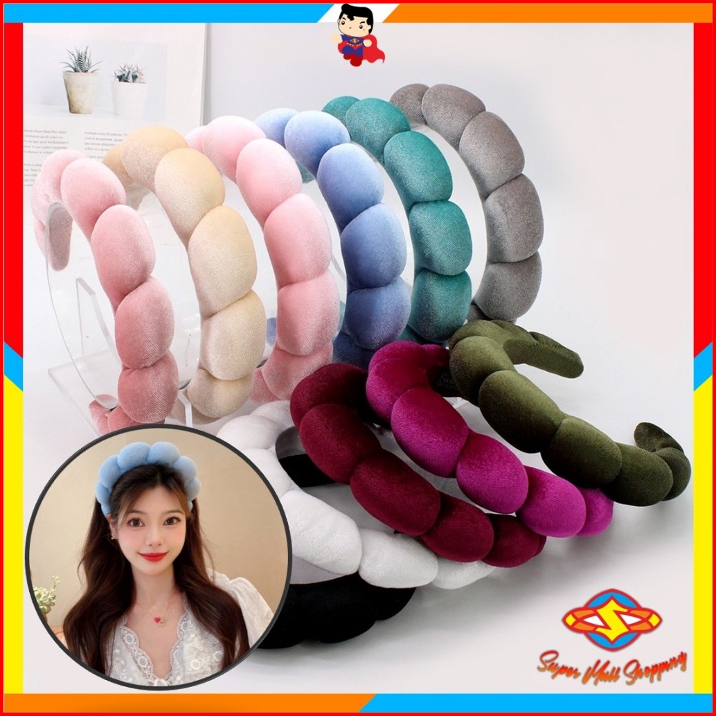 Sms Bando Shell Busa Tebal Jumbo Fluffy Empuk Polos Bandana Cloud Style Gaya Korea Fashion Head Band Aksesoris Rambut