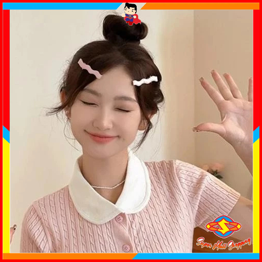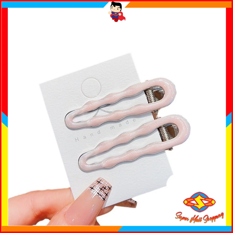 Sms Jepit Rambut Wanita 2 Pcs Pink Silver Aksesoris Korea Model Gelombang Lucu Jepit Rambut Kekinian Handmade Jepit Ramb