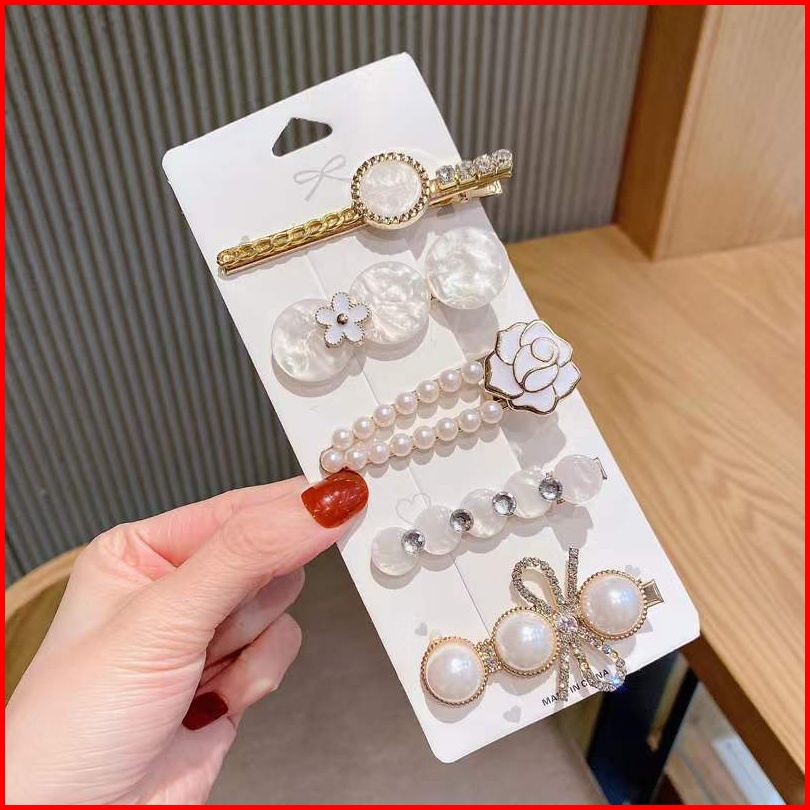 Sms Jepit Rambut Mutiara 5 In 1 Jepitan Rambut Fashion Wanita Dewasa Clip Set Jepitan Hair Pin Gaya Korea Hiasan Rambut