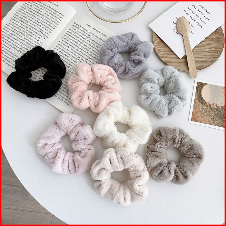 Sms Ikat Rambut Scrunchie Hijab Gelang Hairband Kunciran Lingkar Besar Bulu Lembut Korea Motif Polos