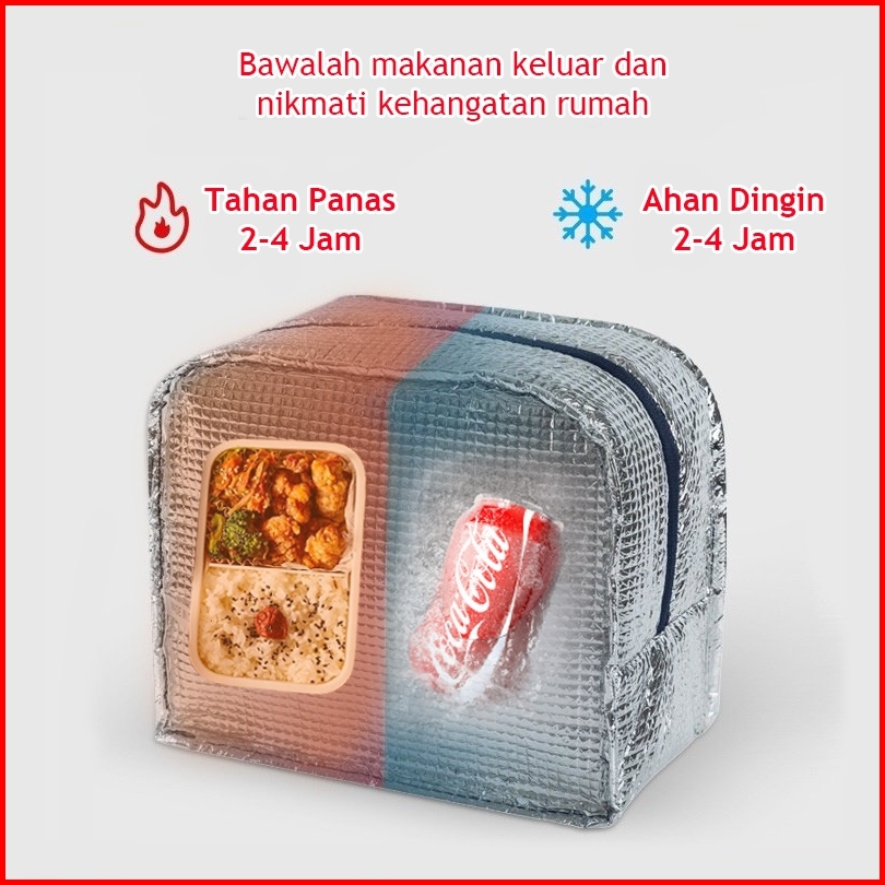 Eatkit Tas Bekal Tas Makan Siang Warna Solid Tebal Aluminium Foil Tahan Air Lunch Bag Thermal Cooler Karakter