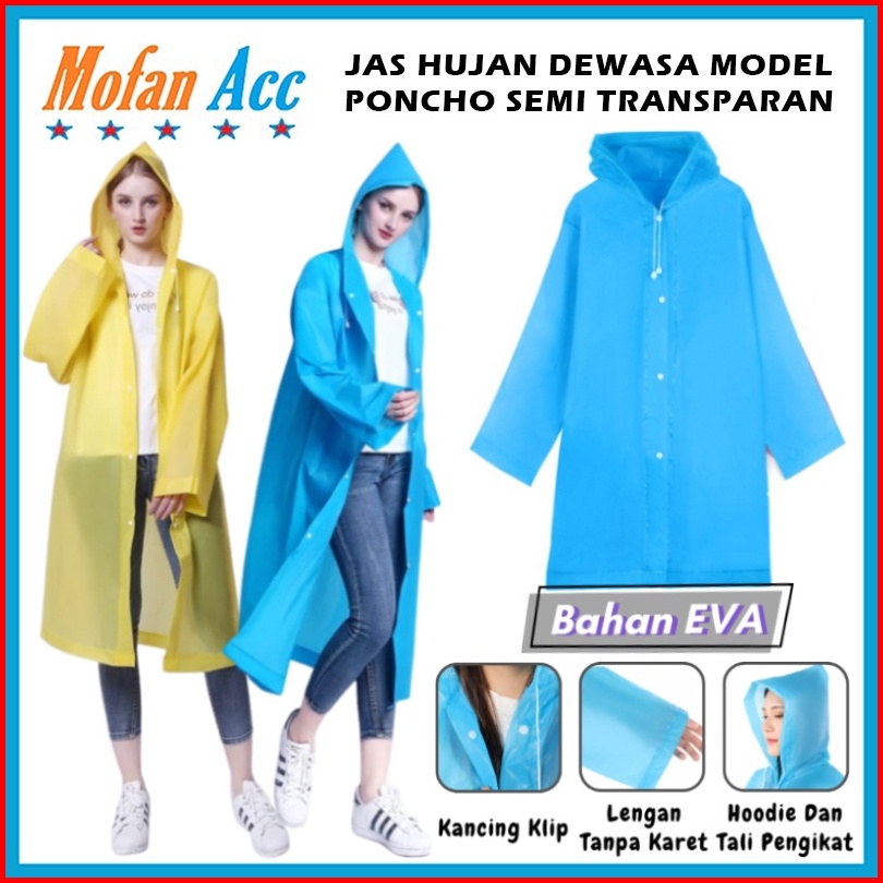 Jas Hujan Dewasa Poncho Waterproof Bahan Eva Tebal Mantel Korea Semi Transparan Anti Basah - Mofan Acc