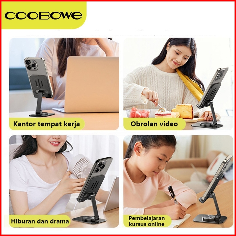 Coobowe Metal Phone Holder Hp Meja Portabel Dekstop Stand Holder Hp Besi 360 Degree Rotation Tablet Stand Dudukan Hp Di