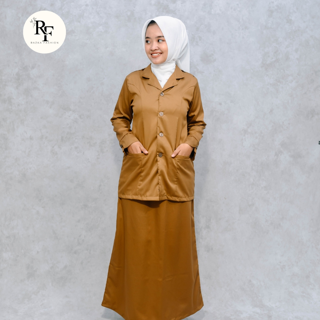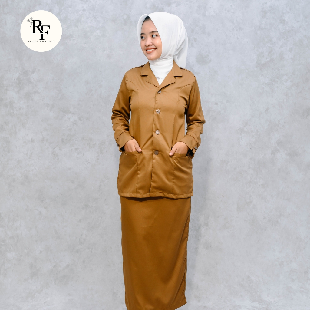 Setelan Baju Seragam Dinas PNS/PPPK PDH Khaki Tua Pemda Wanita Model Kerah Rebah
