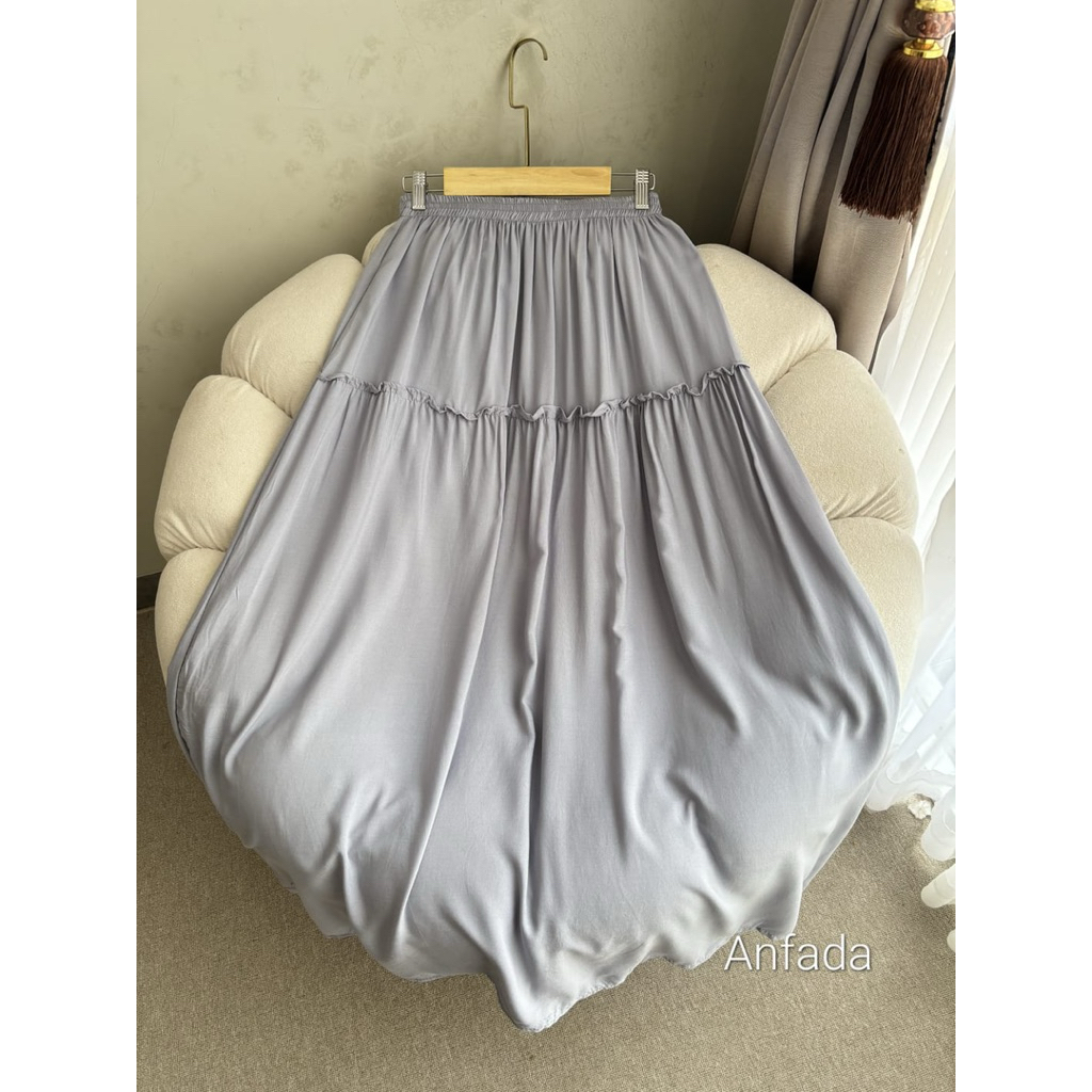 Rok Raffle Rayon Twill Warna Pastel untuk Kerja dan Daily