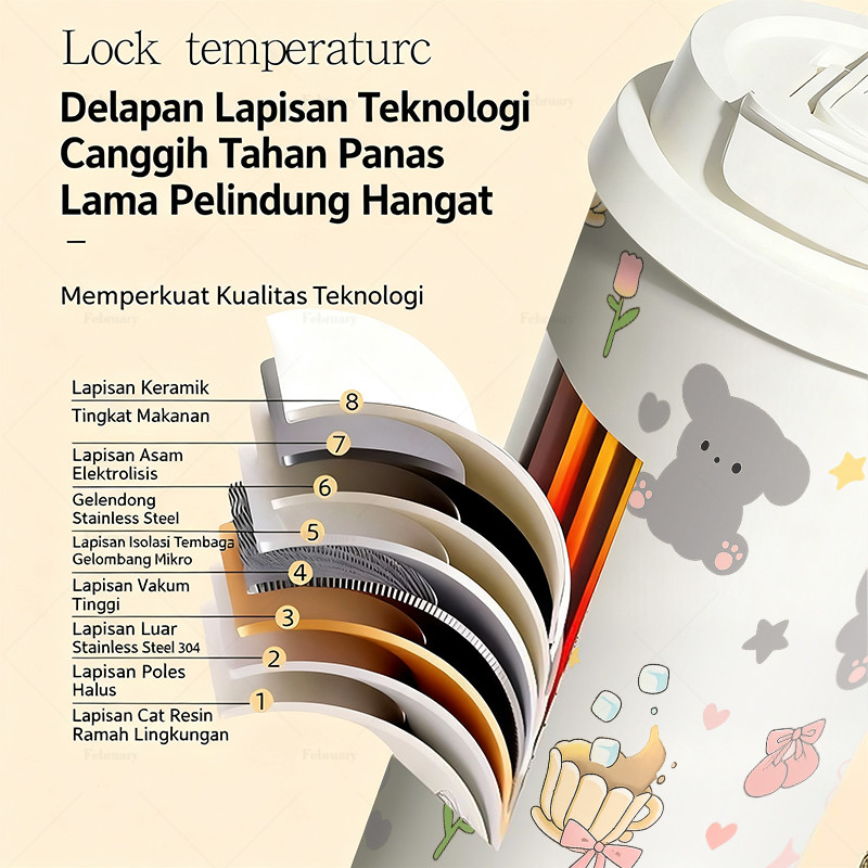 Tumbler stainless 316 sus 500ML tumbler aesthetic viral lucu/cangkir kopi/tumbler tahan panas dingin/botol minum/tumbler sedotan/tambler botol minum/ LLB487SHHH