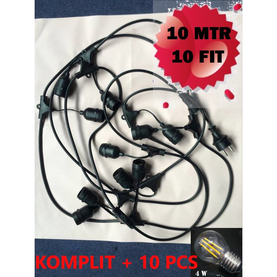 Komplit Kabel 10 Meter 10 Led Bulat 4W Outdoor Waterproof Lampu Gantung 10M 10L Carnaval Cafe Taman