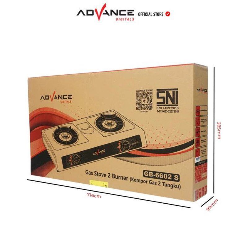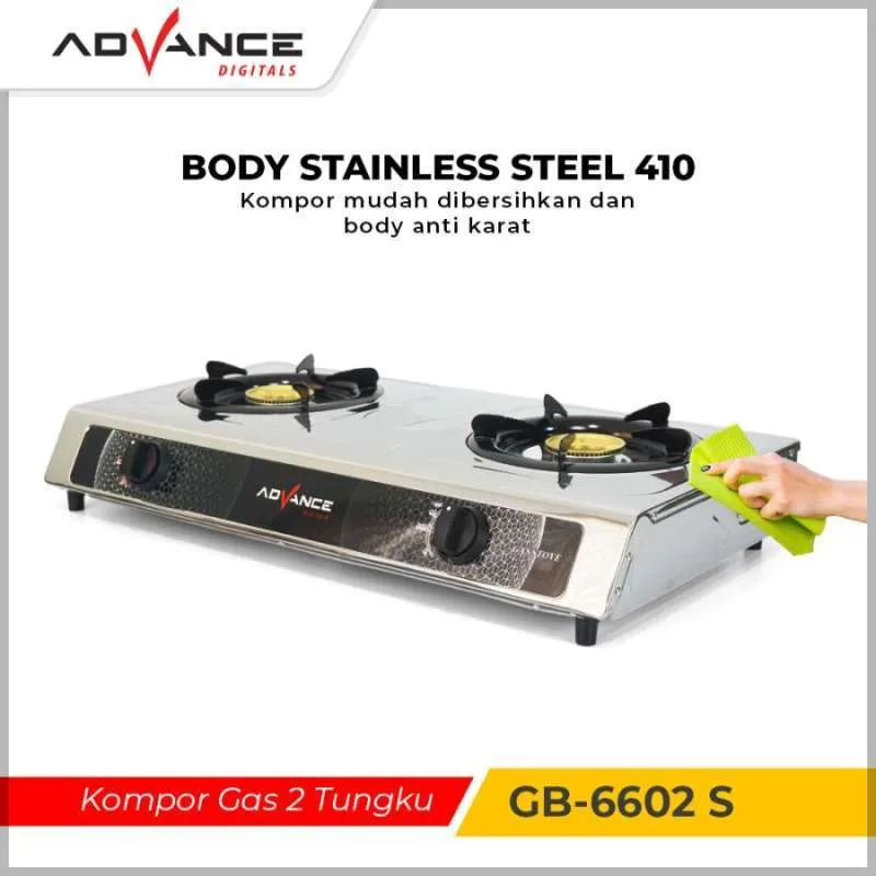 Kompor Advance Kompor Gas Stainless Steel 2 Tungku Advance Gb-6602 S