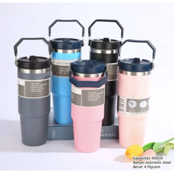 ENISOO STORE - GELAS TERMOS CLASSIC HOT & COLD 900ML || TUMBLER HANDLE PREMIUM STAINLESS STEEL || TERMOS GAGANG TAHAN PANAS & DINGIN