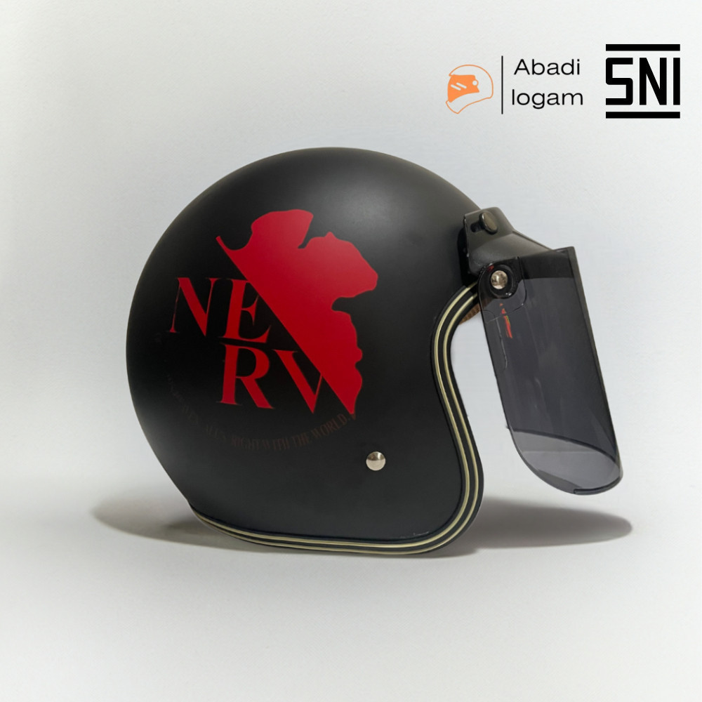Helm Bogo Retro Classic SNI - Full Leher, Ukuran All Size (Motif Evangelion)