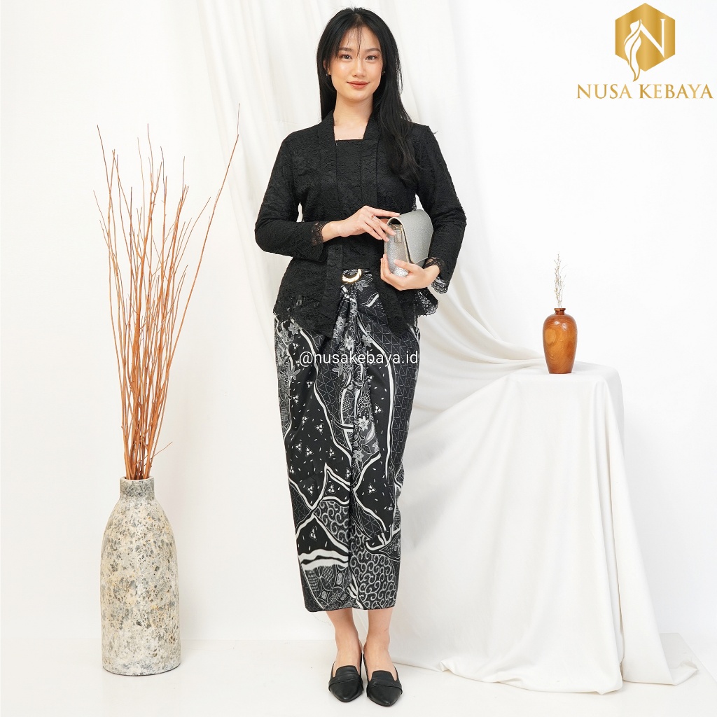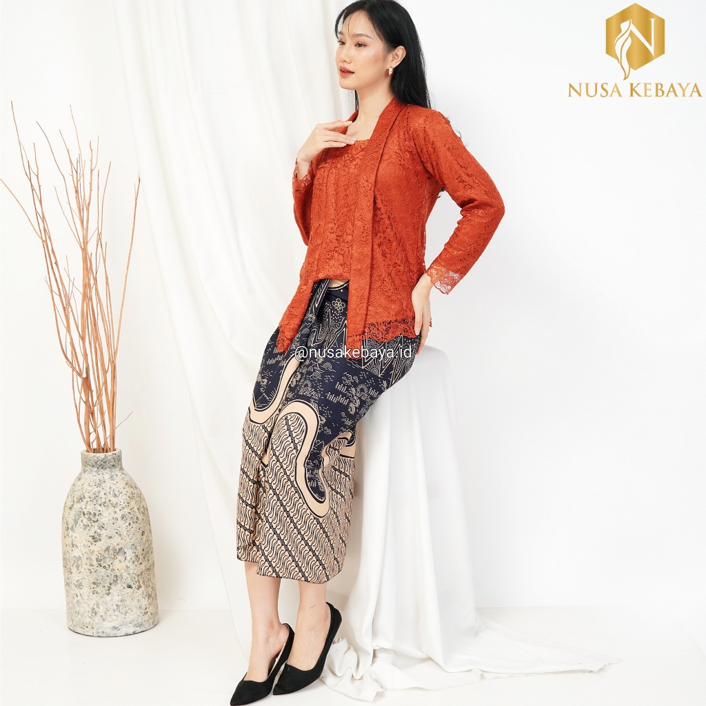 Nusa_Kebaya Setelan Kebaya Diajeng Model Kutubaru Brukat Lengan Panjang Rok Lilit Batik Kebaya Raya