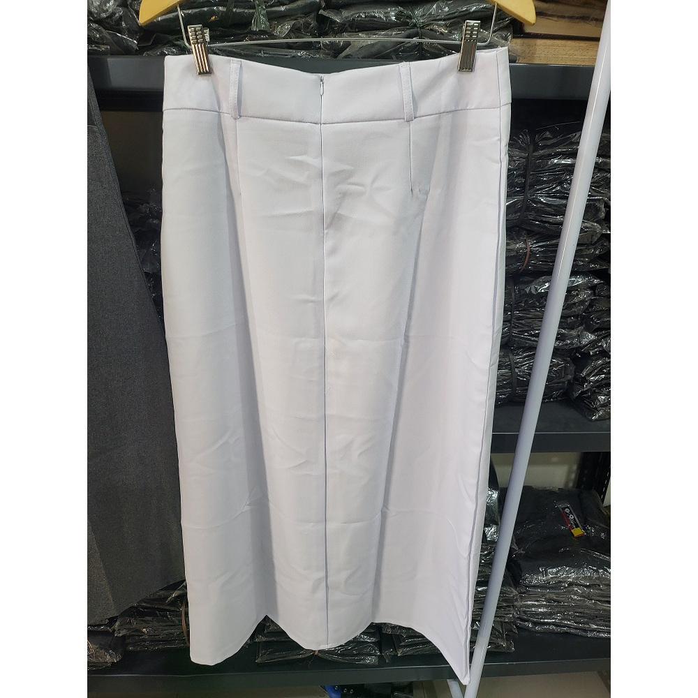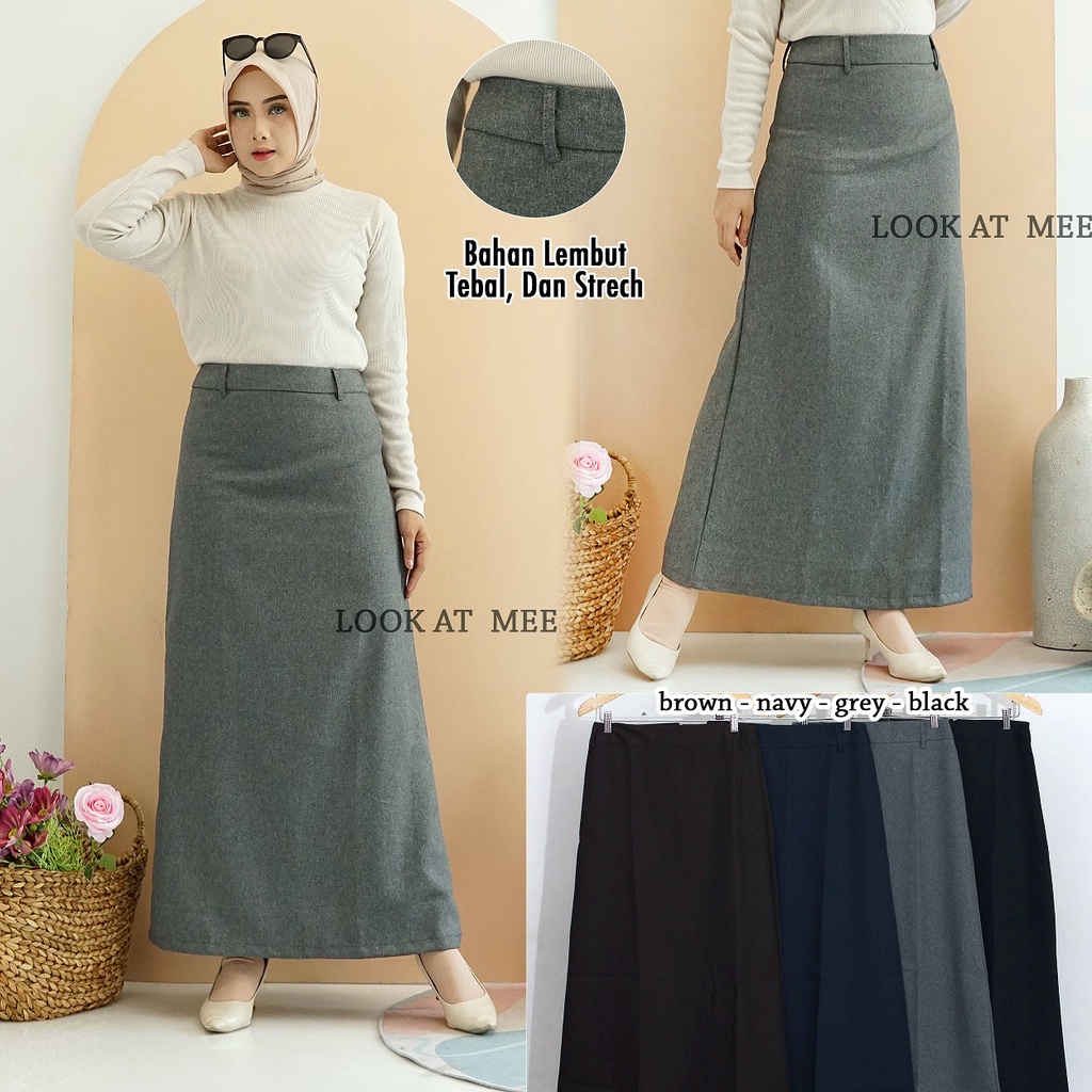 Rok panjang A Line mewah hitam pekat halus Rok Kerja Rok Sekolah ada Rok Pinggang Karet plus kantong