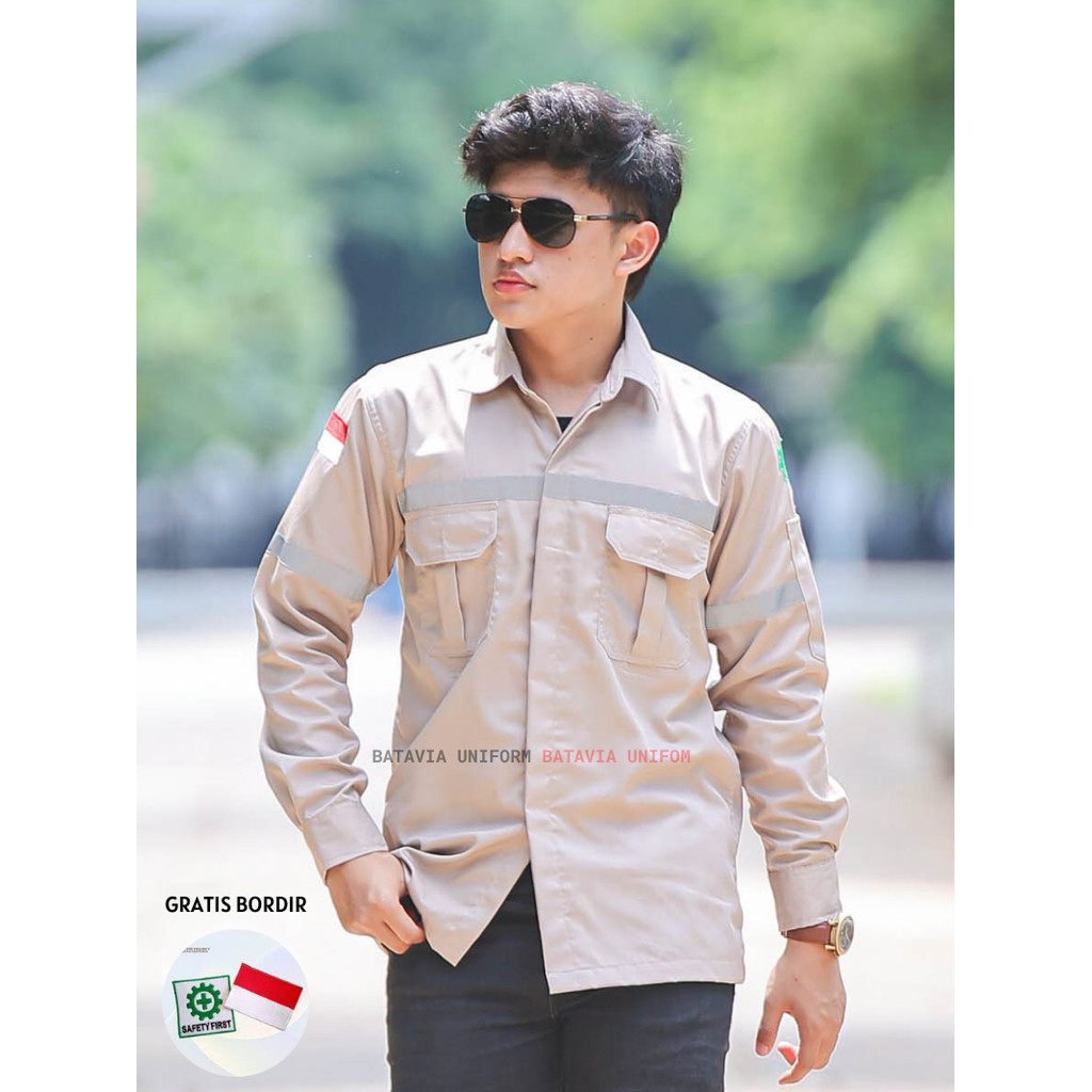 BAJU KEMEJA KERJA WEARPACK SAFETY K3 LENGAN PANJANG PRIA WANITA SERAGAM KERJA WERPACK PROYEK TAMBANG PRIA WANITA WARNA CREAM CUSTOM BORDIR SATUAN - BATAVIA UNIFORM