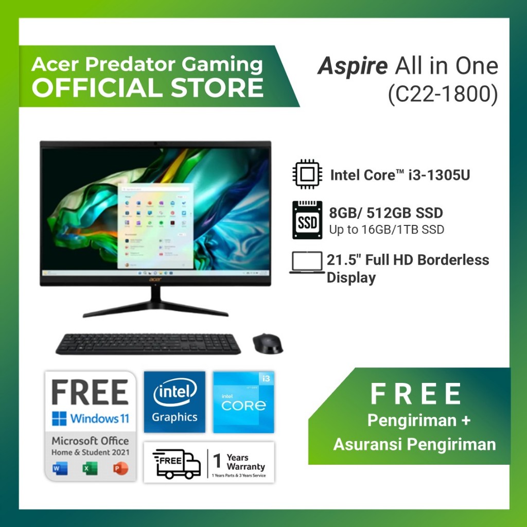 ACER ASPIRE ALL IN ONE C22-1800 INTEL CORE I3 1305 8GB 512GB WINDOWS 11 +OFFICE 21.5 INCH FHD