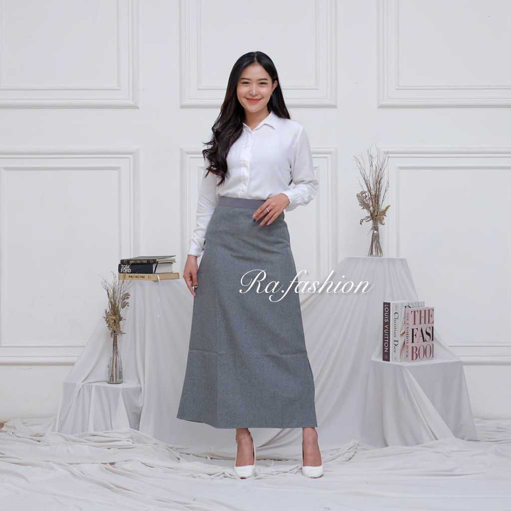 Rok Kerja Formal Pinggang Karet Model A Line Maxi Rok Panjang Wanita Bahan Woll Premium Quality RA
