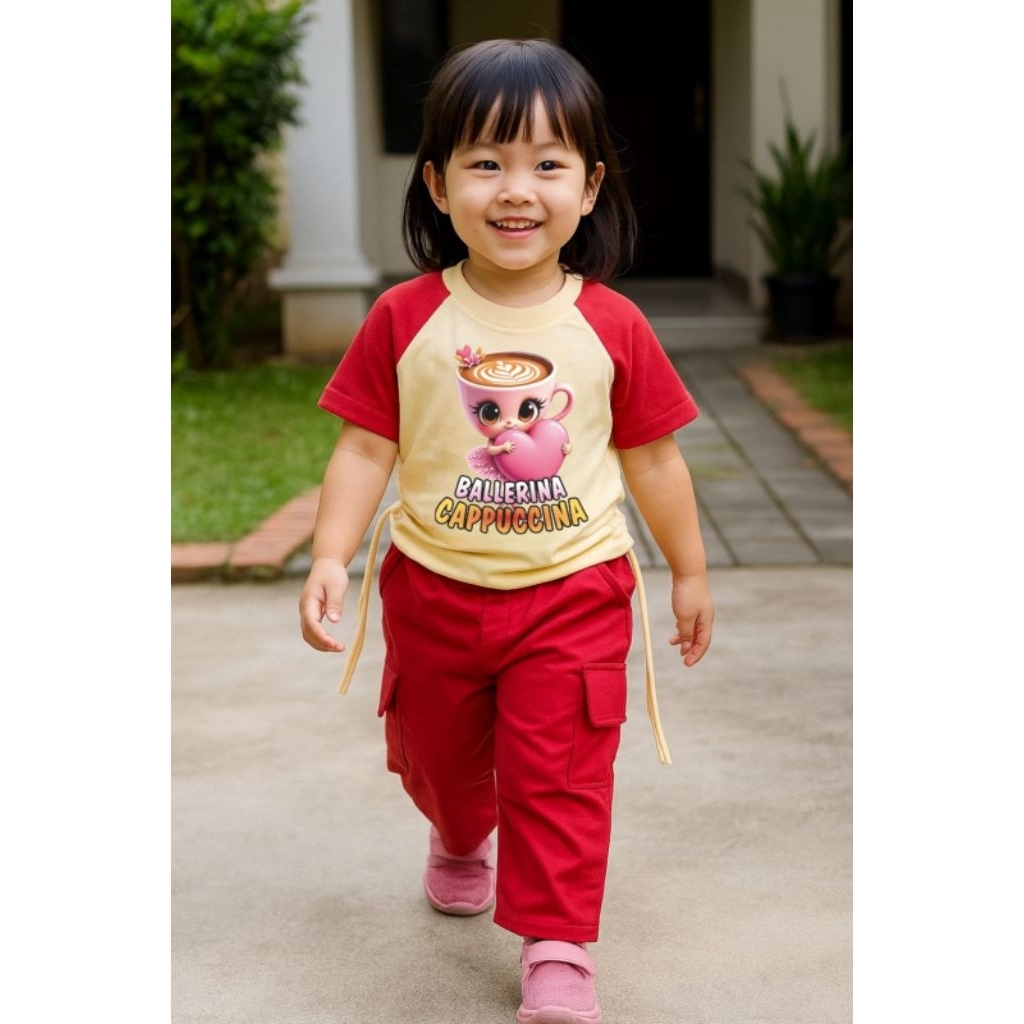 Baju anak perempuan setelan cargo anak perempuan motif ballerina capucino usia 1 sampai 9 tahun
