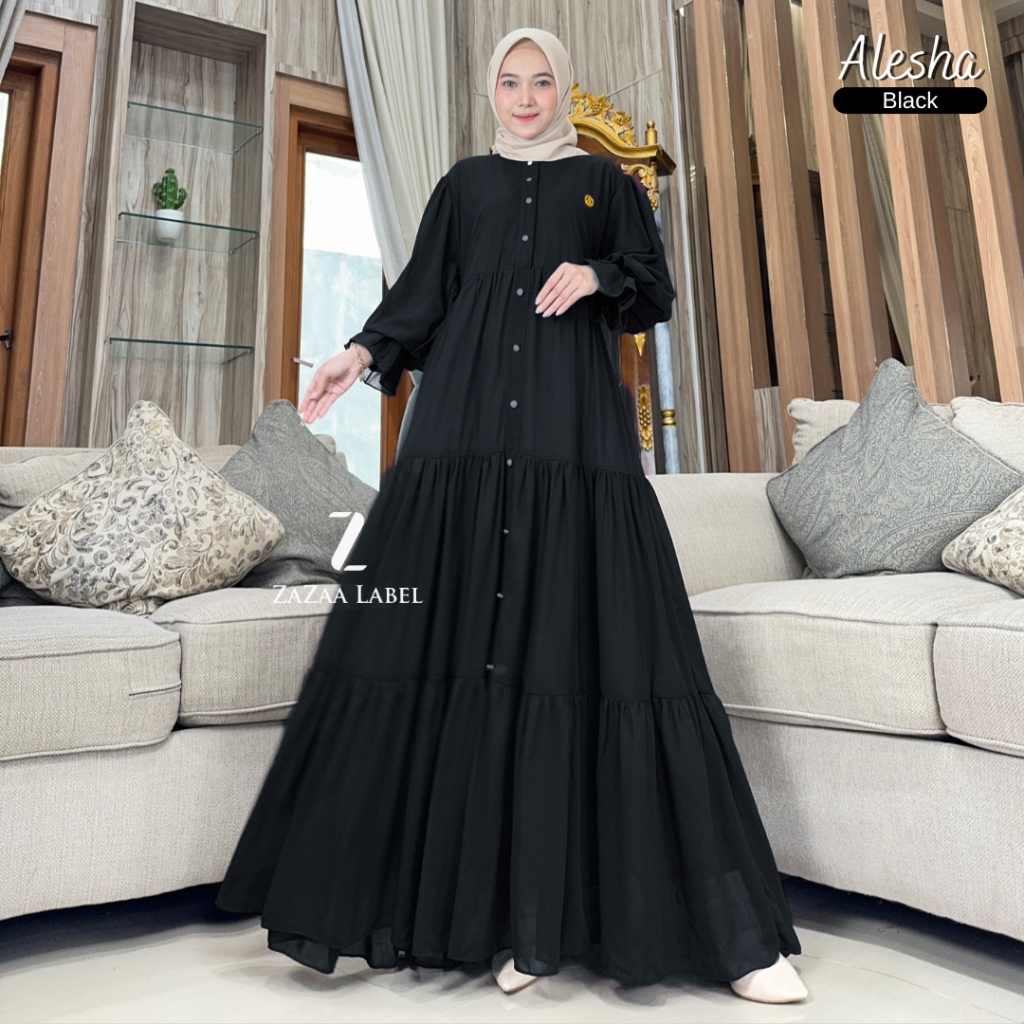 Zazaa Label - Alesha Dress Premium Ceruty Babydoll Jumbo Formal Terlaris Terbaru Termurah Best Seller Gamis Wanita Kekin