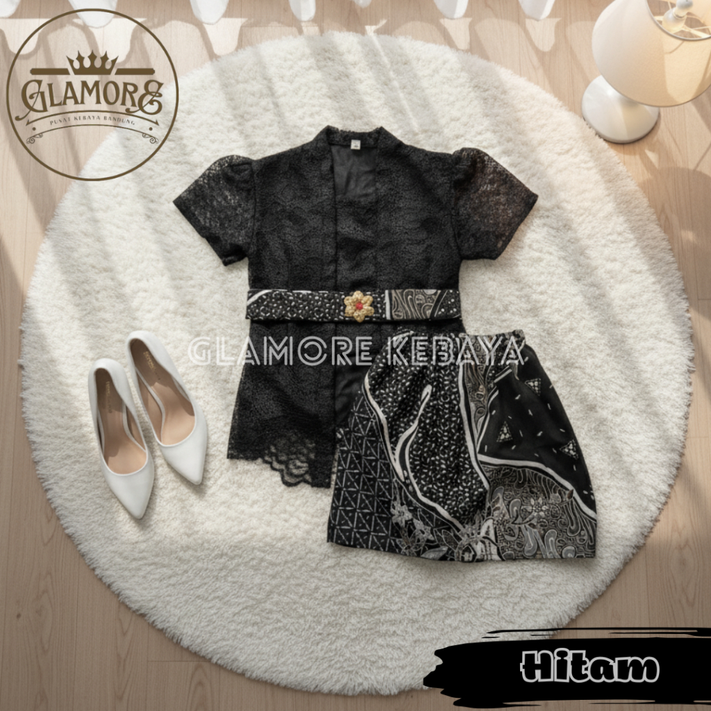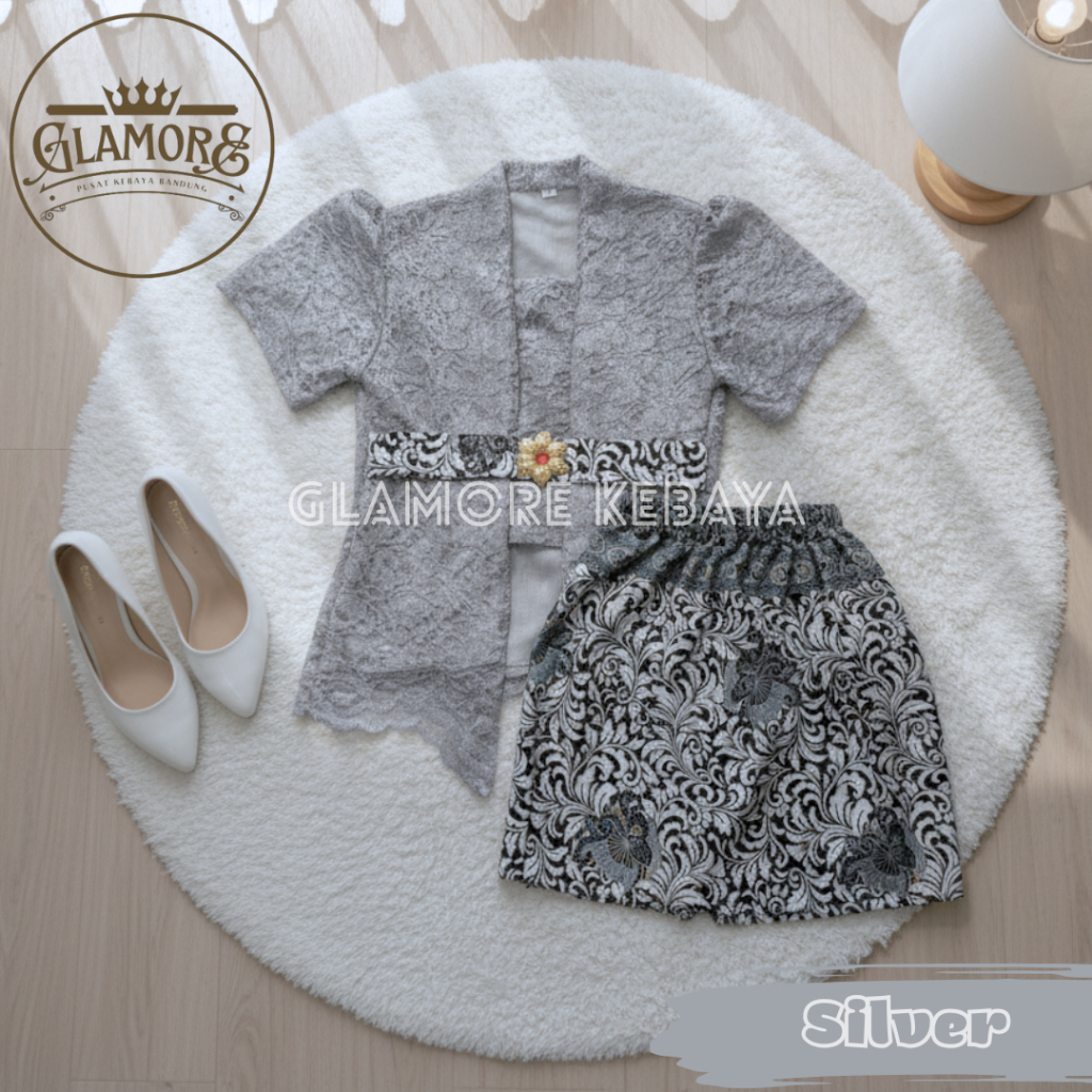 Setelan Kebaya Anak Perempuan Kutubaru Rok Span Pendek Brukat Full Furing Usia 1 Sampai 8 Tahun