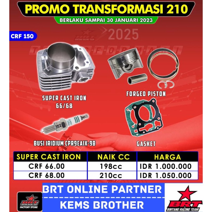 BLOK CRF BRT BORE UP CASTING IRON PISTON 66MM/68MM ORIGINAL GRATIS BUSI RNG BRT ORIGINAL