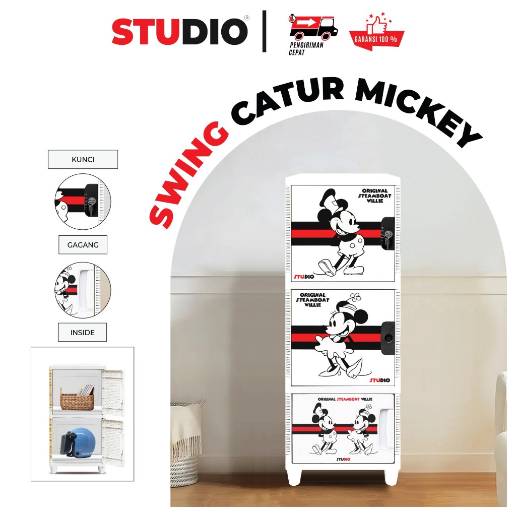 STUDIO - Lemari Pakaian Plastik Swing Catur Mix 1 Pintu Motif Mickey Mouse Susun 2, 3, 4, dan 5