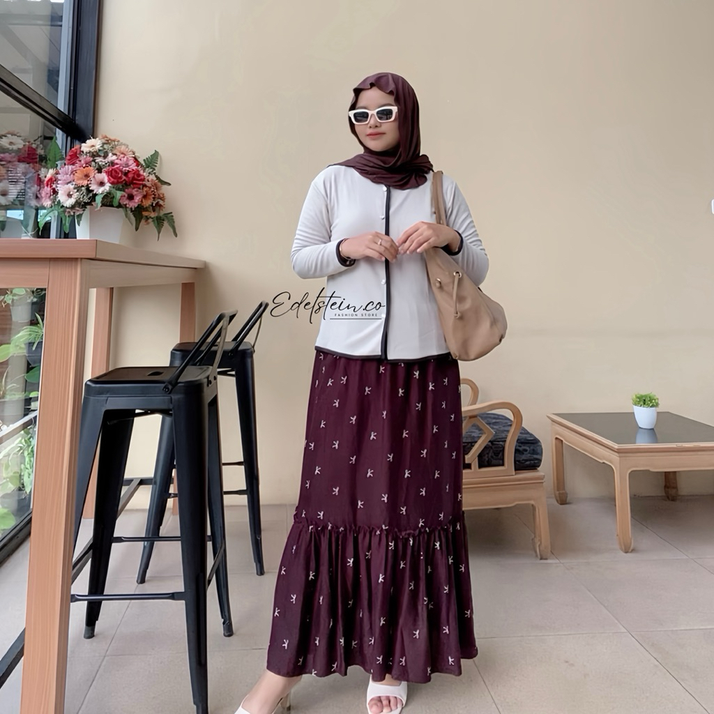 Edl Rok Wanita Rayon Motif / Rok Ruffle Canda Rayon Preium / Floral Skirt Motif Aesthetic